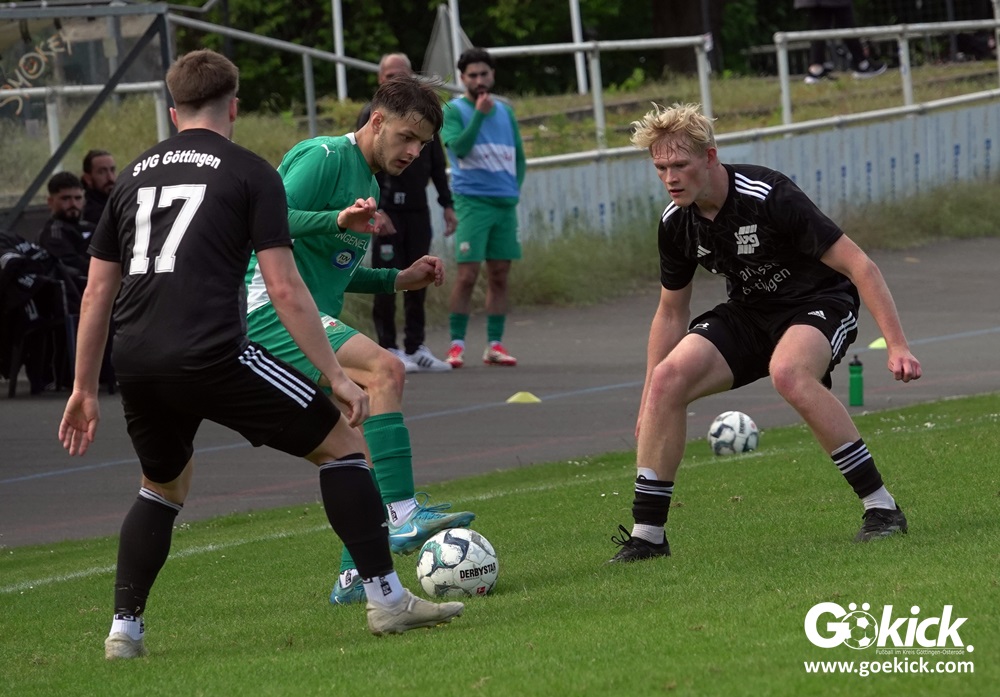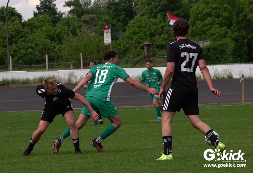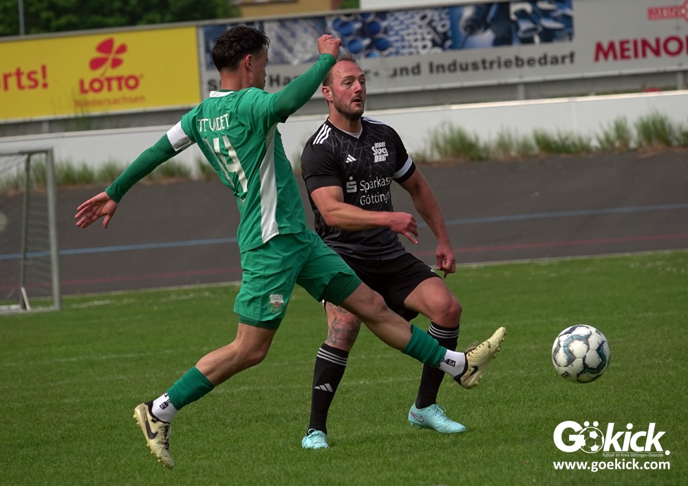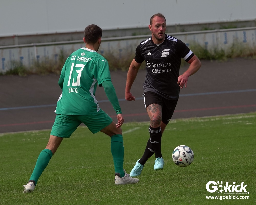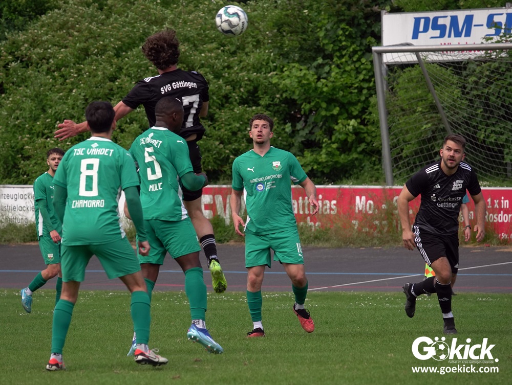 Nur etwa 70 Zuschauer wollten das bedeutungslose Landesliga-Spiel zwischen dem Tabellensiebten, der SVG Göttingen, und seinem Tabellennachbarn TSC Vahdet Braunschweig am Sonntag-Nachmittag sehen. Nach 90 intensiven, wenn auch fußballerisch nicht immer sehr attraktiven Minuten trennten sich die Kontrahenten im KRÜGERPARK am Sandweg beim 1:1 (0:1)-Unentschieden die Punkte. Beide Mannschaften bleiben auf ihren Mittelfeldplätzen in der Tabelle der Landesliga.
