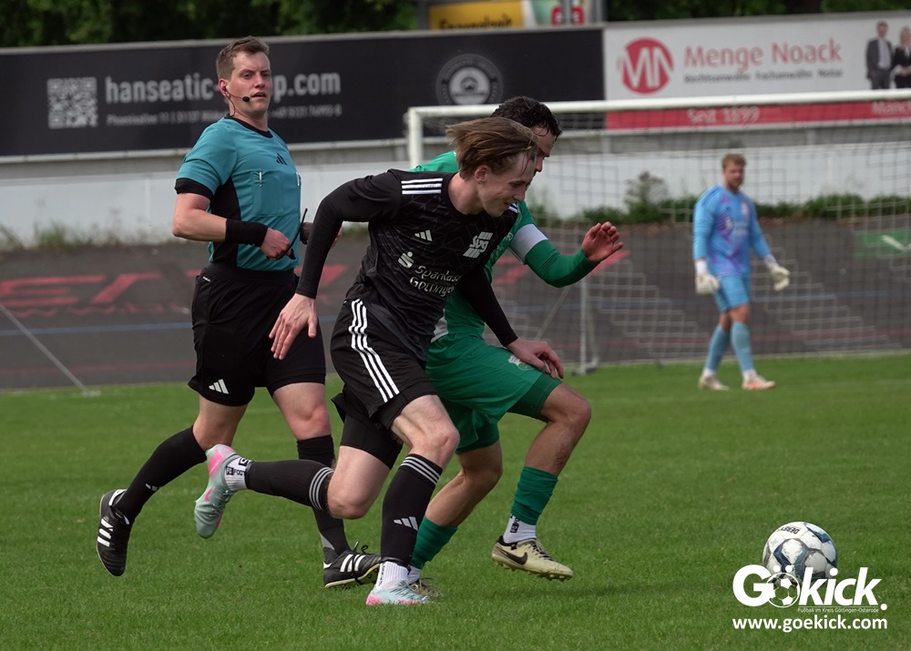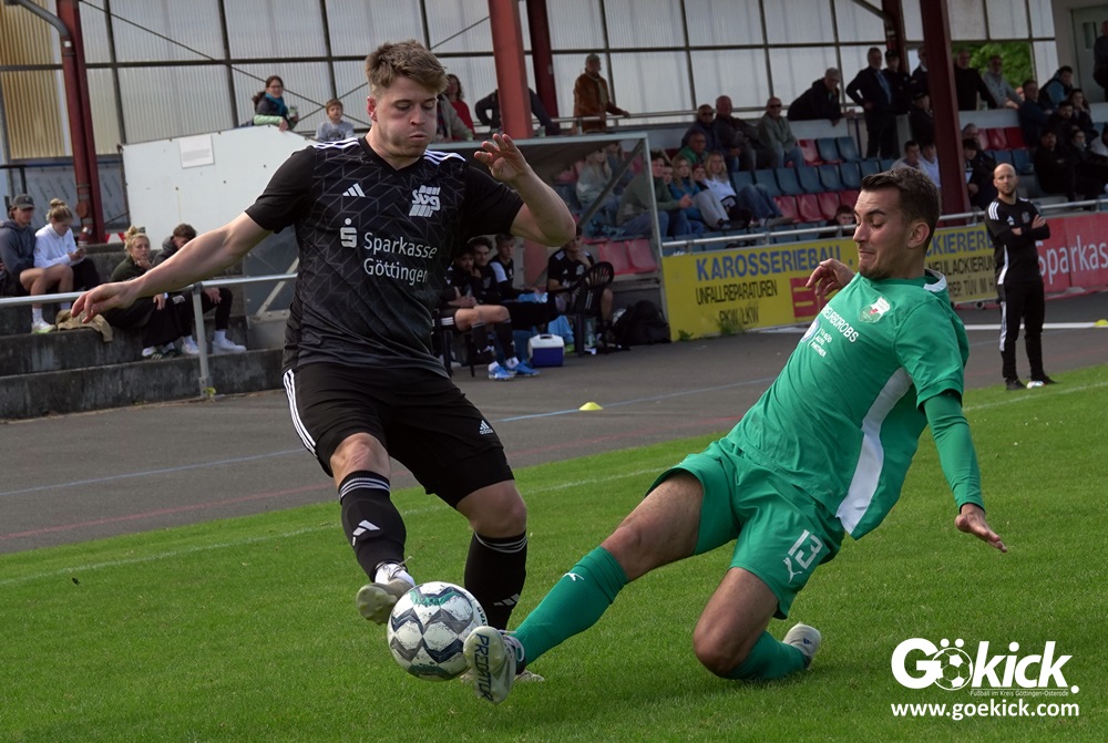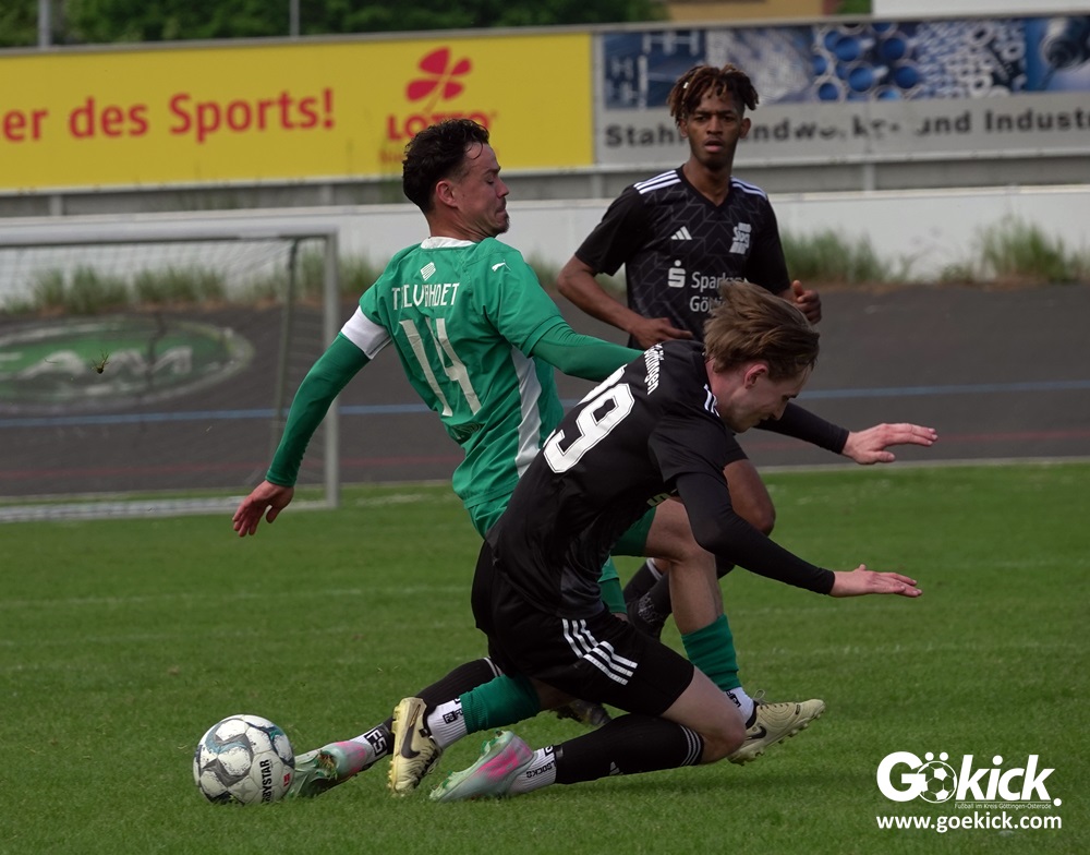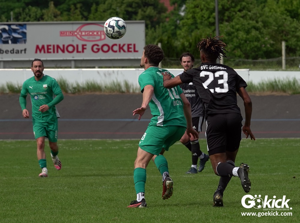 Über die Leistung des ersten Abschnittes gab es unter den Zuschauern gegensätzliche Einordnungen. Vorstand Sport, Thorsten Tunkel gefiel das von seiner SVG Gezeigte, andere bezeichneten die ersten 45 Minuten als Grottenkick. Dabei hätte Schiedsrichter Sascha Kordts in der 11. Spielminute einen Elfmeter pfeifen müssen, doch er sah das klare Foul an Nicolas Krenzek nicht. Der quirlige Angreifer war es auch, der nach 29 aussichtsreich den Ball über das Gäste-Tor schoss. In der 39. Spielminute dann der Gegentreffer durch Dzahner Karakash. Er wurde per Hacke von seinem Kameraden Samet Piskin freigespielt und schob locker zur Gäste-Führung ein. Mit dem Rückstand für die Hausherren ging es in die Halbzeitpause.