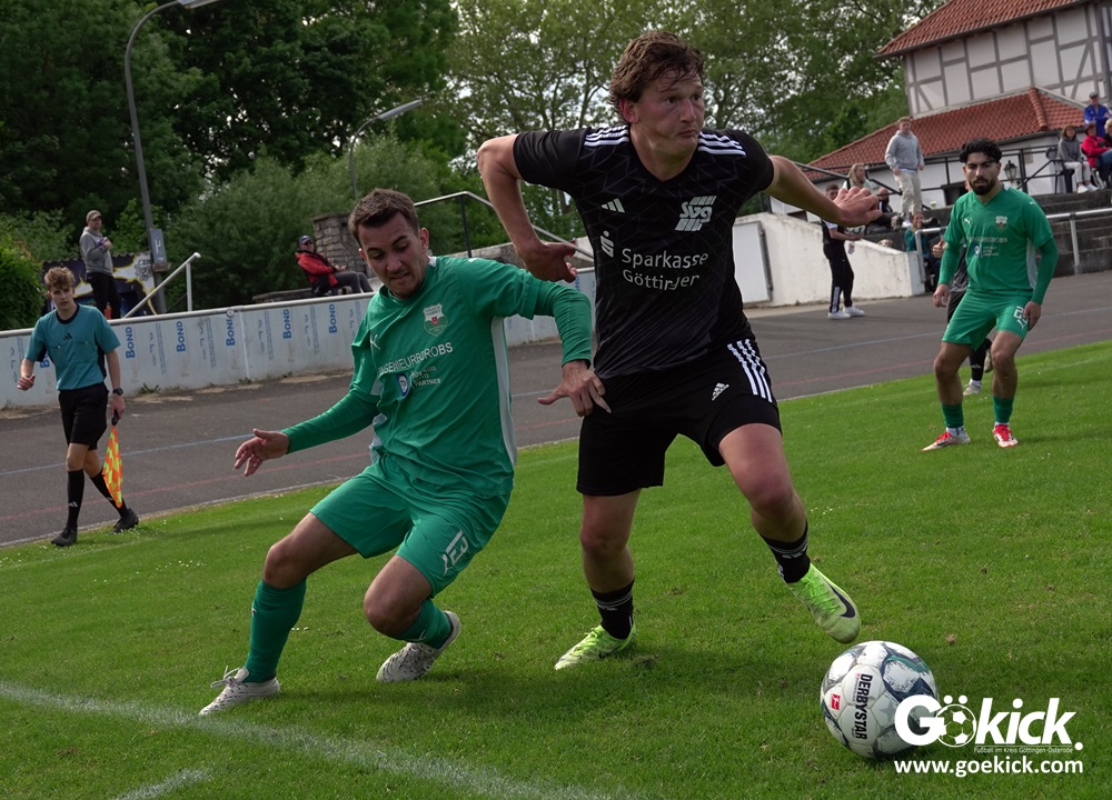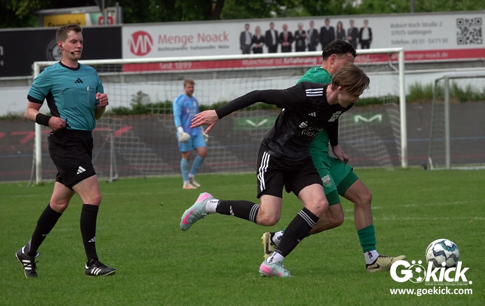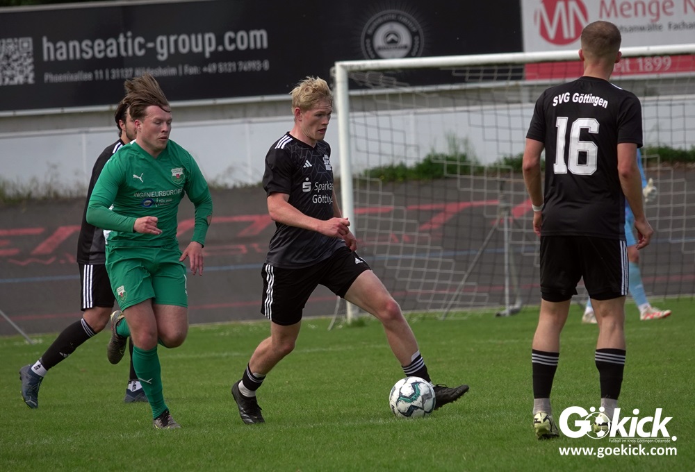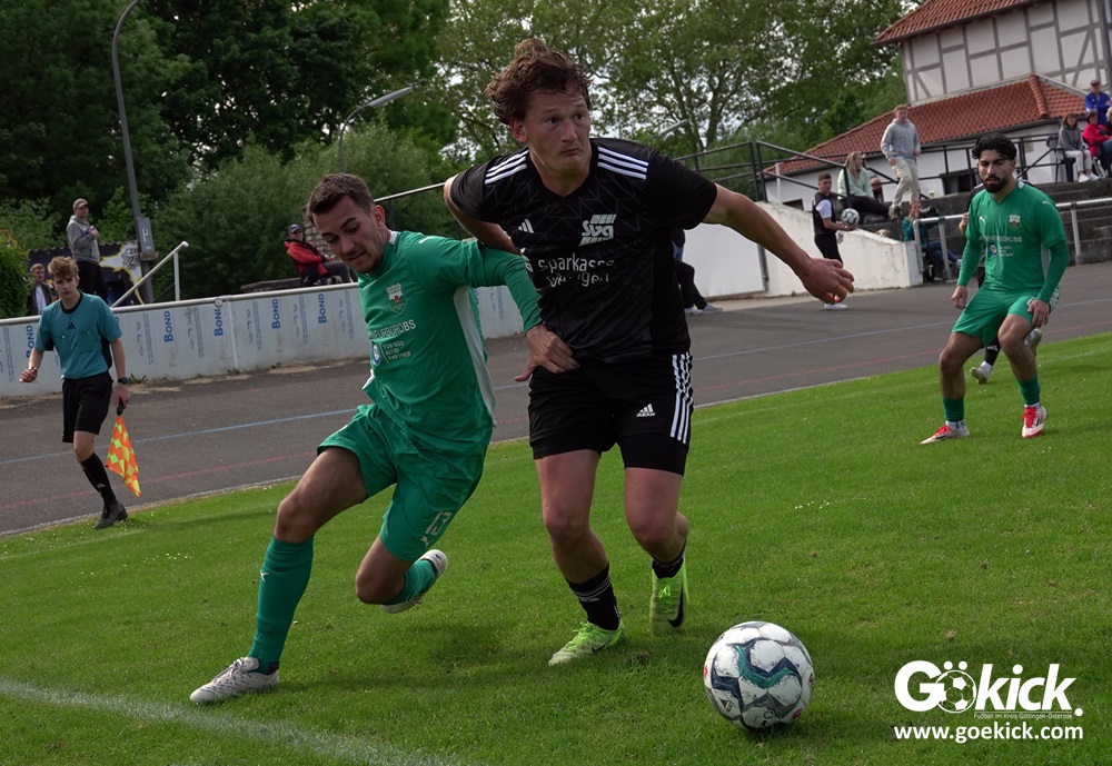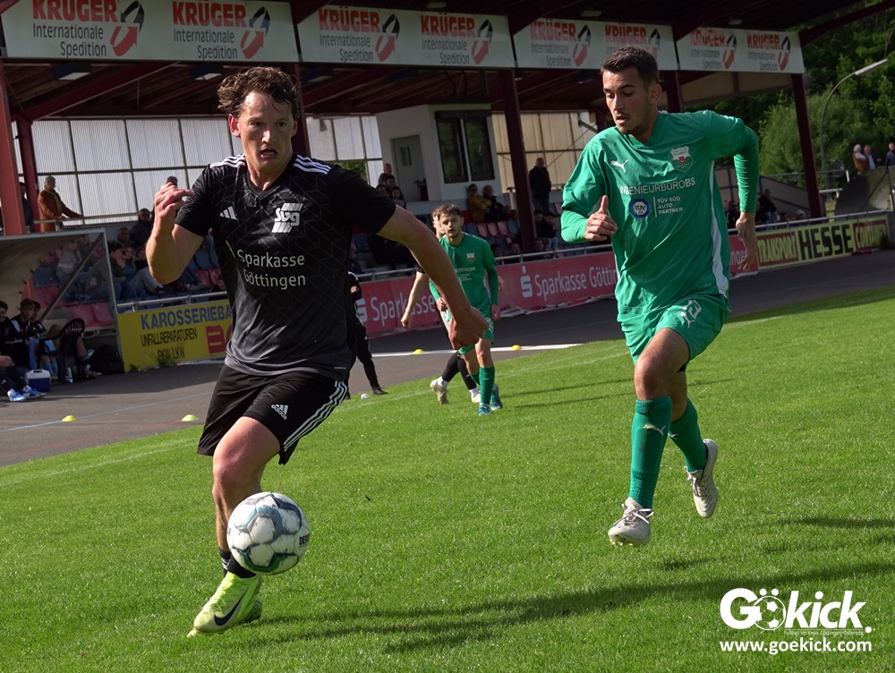 Über die Leistung des ersten Abschnittes gab es unter den Zuschauern gegensätzliche Einordnungen. Vorstand Sport, Thorsten Tunkel gefiel das von seiner SVG Gezeigte, andere bezeichneten die ersten 45 Minuten als Grottenkick. Dabei hätte Schiedsrichter Sascha Kordts in der 11. Spielminute einen Elfmeter pfeifen müssen, doch er sah das klare Foul an Nicolas Krenzek nicht. Der quirlige Angreifer war es auch, der nach 29 aussichtsreich den Ball über das Gäste-Tor schoss. In der 39. Spielminute dann der Gegentreffer durch Dzahner Karakash. Er wurde per Hacke von seinem Kameraden Samet Piskin freigespielt und schob locker zur Gäste-Führung ein. Mit dem Rückstand für die Hausherren ging es in die Halbzeitpause.