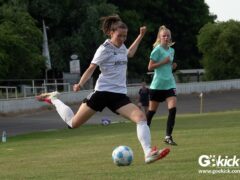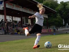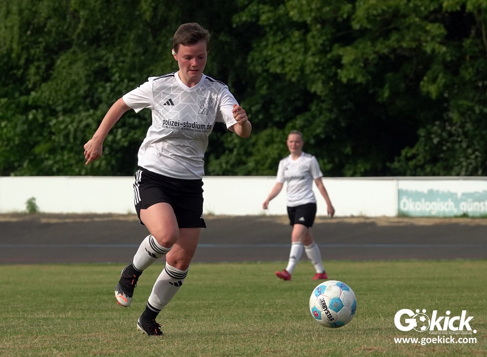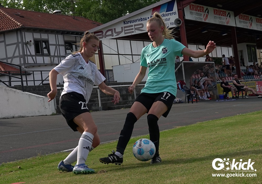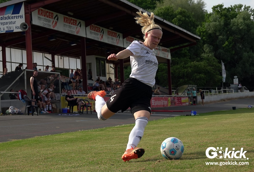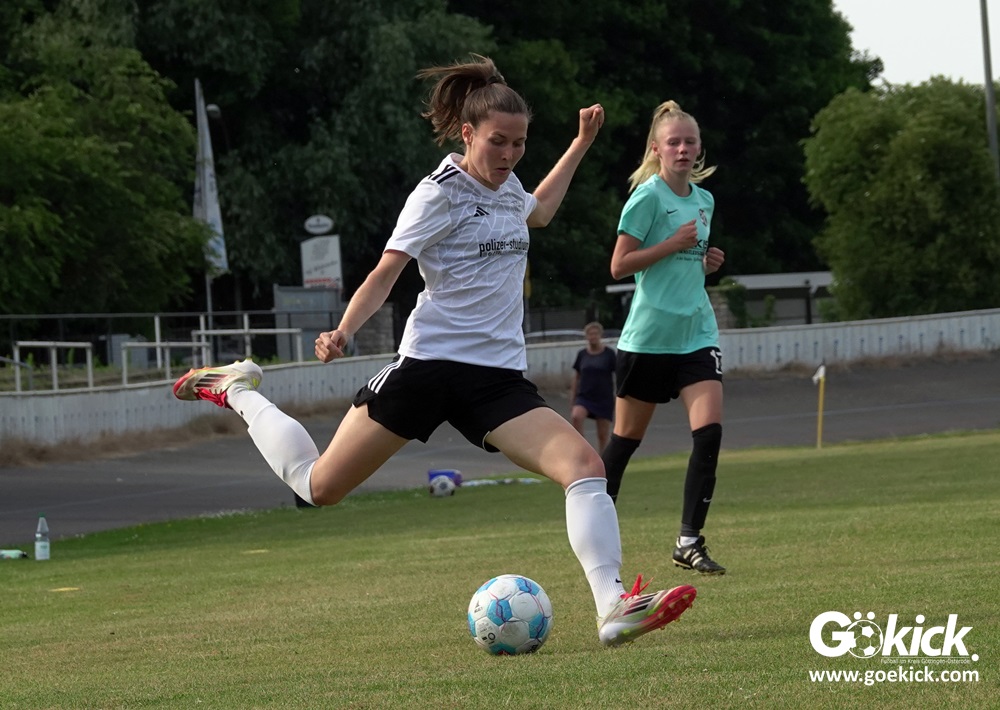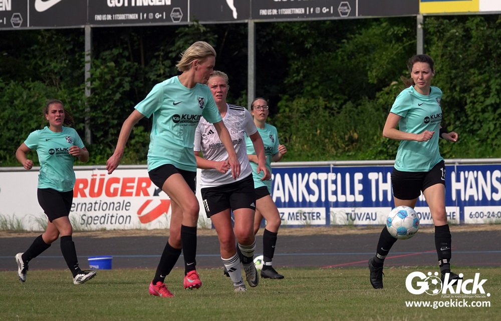 Nach 17 Minuten brachte Jasmin Kochinke die Sandweg-Mädels mit 1:0 in Führung. Der Fußball der SVG war diesmal nicht so spektakulär, wie in dieser Spielzeit oft gesehen. So erlebten die Zuschauer eher den hohen Temperaturen angepassten Sommerfußball. Mit der 1:0-Führung wurden die Seiten gewechselt.