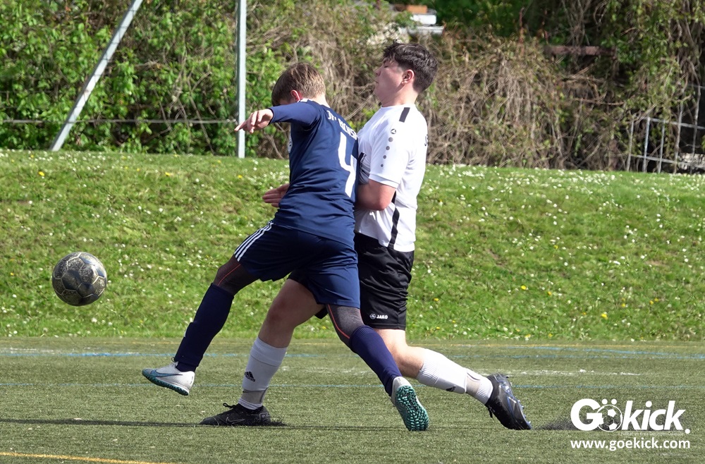 Bereits nach vier Minuten gelang Sean Gebert das 1:0 für den Gastgeber. Nur zwei Minuten später erhöhte Marin Crepulja auf 2:0. Die Führung war nicht unverdient, erzeugte die Heimmannschaft in der ersten Phase der Partie großen Druck. Doch allmählich löste sich der Gast vom Druck und kam selbst zu Chancen. Doch blieb es dennoch zur Halbzeitpause beim 2:0.