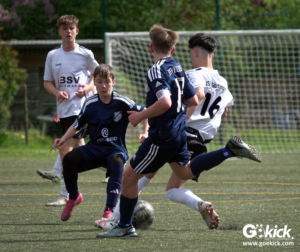 In der C-Jugend-Kreisliga hat die SVG Göttingen die Tabellenführung übernommen. Nach dem deutlichen 8:0-Sieg gegen den VfL 08 Herzberg zum Start in die Spielrunde Mitte April, hat das Team von Trainer Maurice Fricke auch das zweite Punktspiel gewonnen. Diesmal war auf dem Kunstrasenplatz des KRÜGERPARKs am Sandweg der favorisierte JFV Eichsfeld zu Gast und wurde mit 3:2 (2:0) besiegt. Dies war nach zehn Siegen in der Qualifikation und zwei Siegen zum Auftakt der Kreisliga die erste Saison-Niederlage der Gäste von Trainer Sebastian Ibba. Beide Teams stehen nun mit jeweils sechs Punkten an der Tabellenspitze, die SVG hat das bessere Torverhältnis.