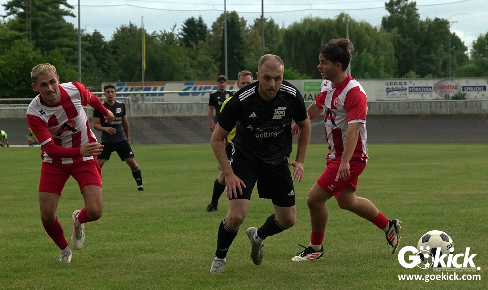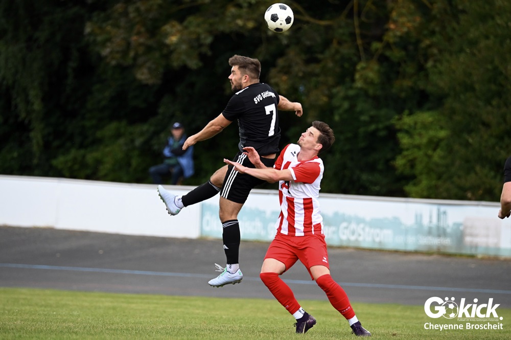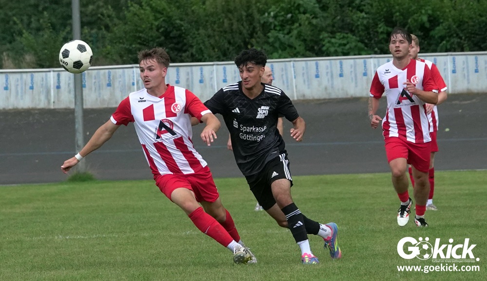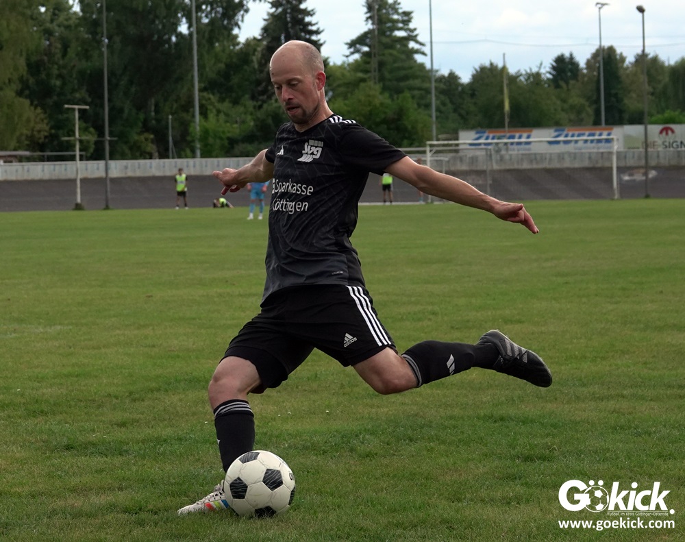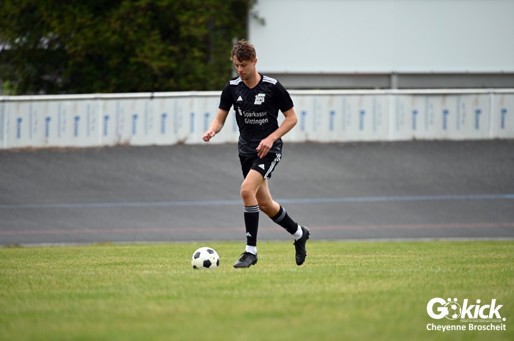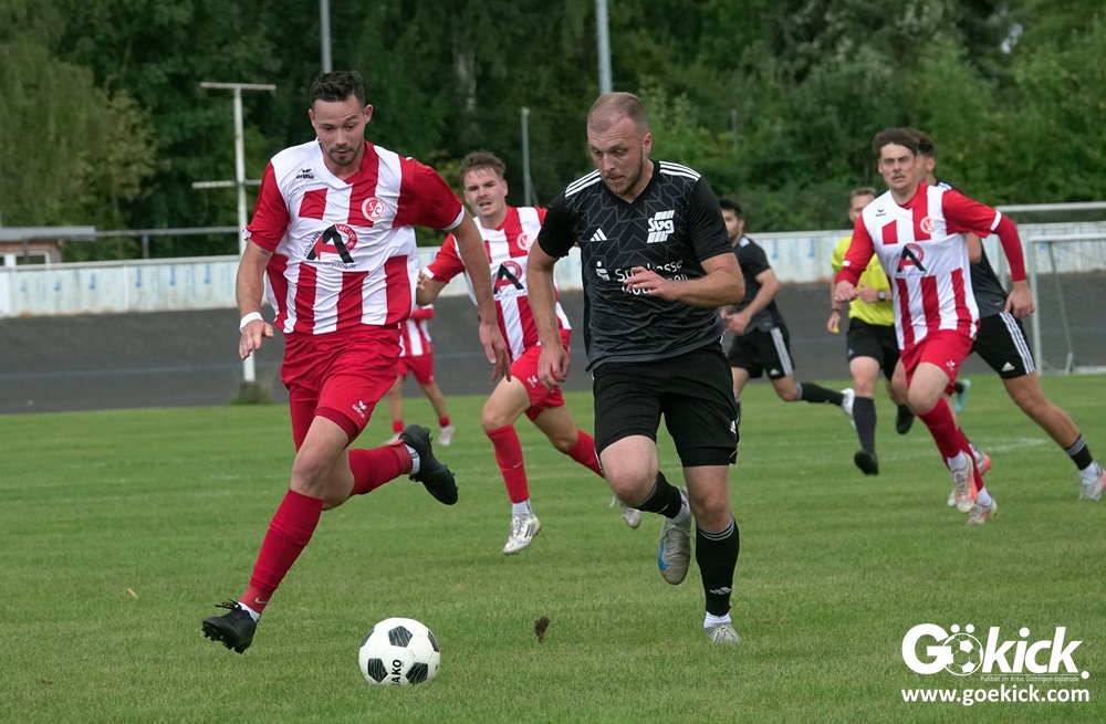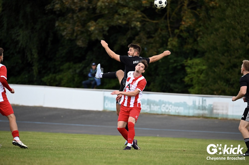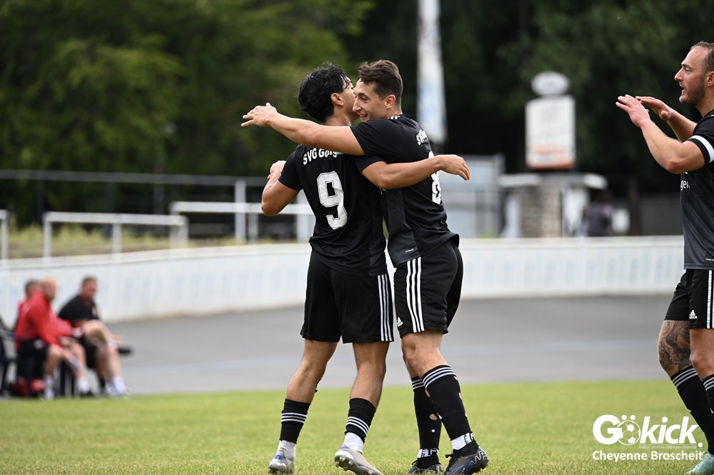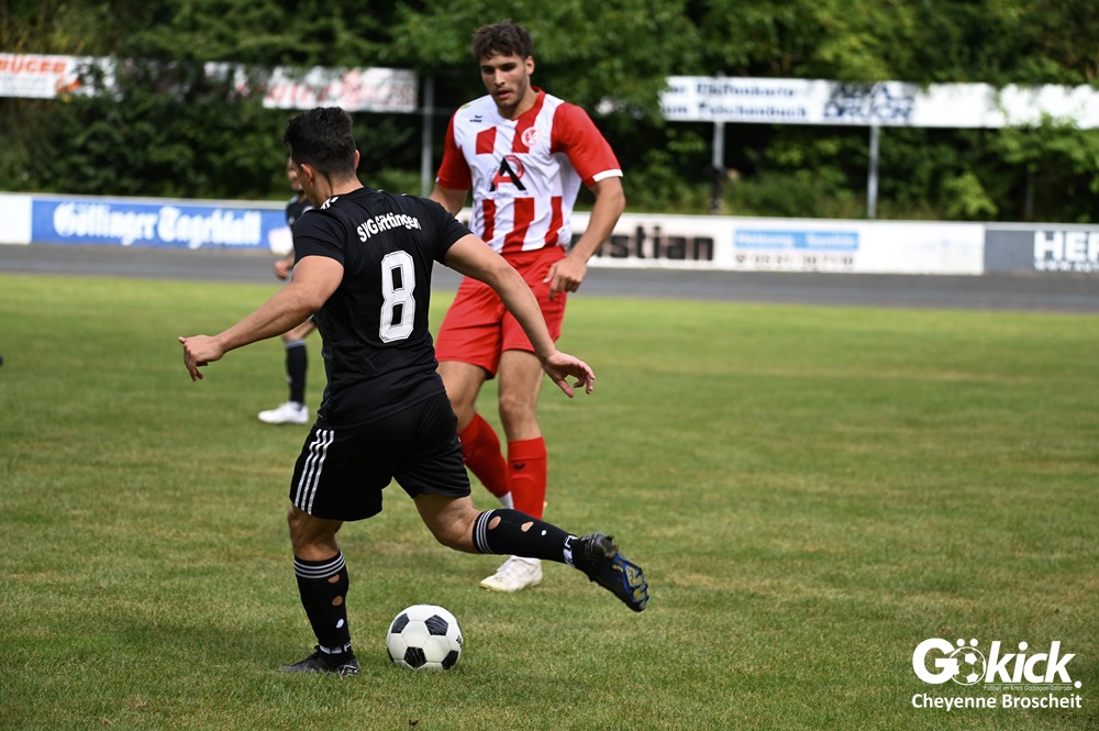 Vor 180 Zuschauern entwickelte sich von Beginn an ein einseitiges Spiel. Die SVG ließ den Ball laufen, hielt die Gäste in Schach und drängte früh auf die Führung. In der 34. Minute belohnte Yannis Fischer die drückende Überlegenheit: Nach einer Hereingabe fasste er sich ein Herz und vollendete per Volley sehenswert zum verdienten 1:0.