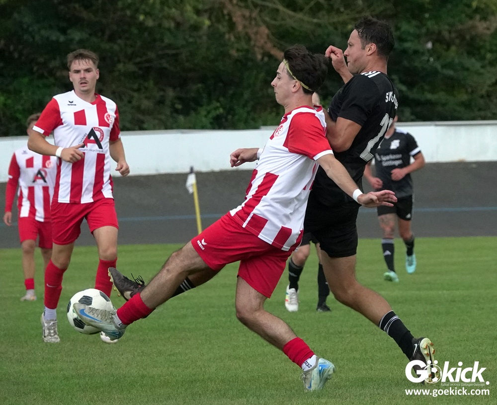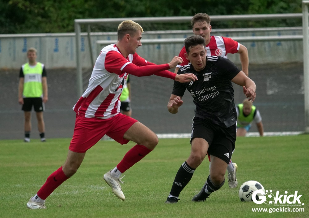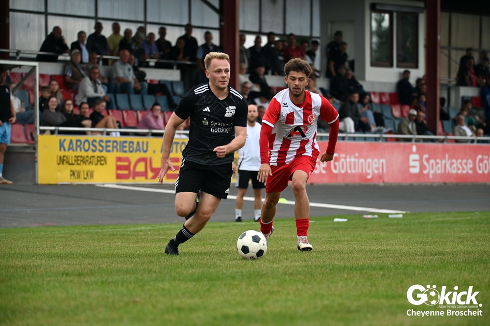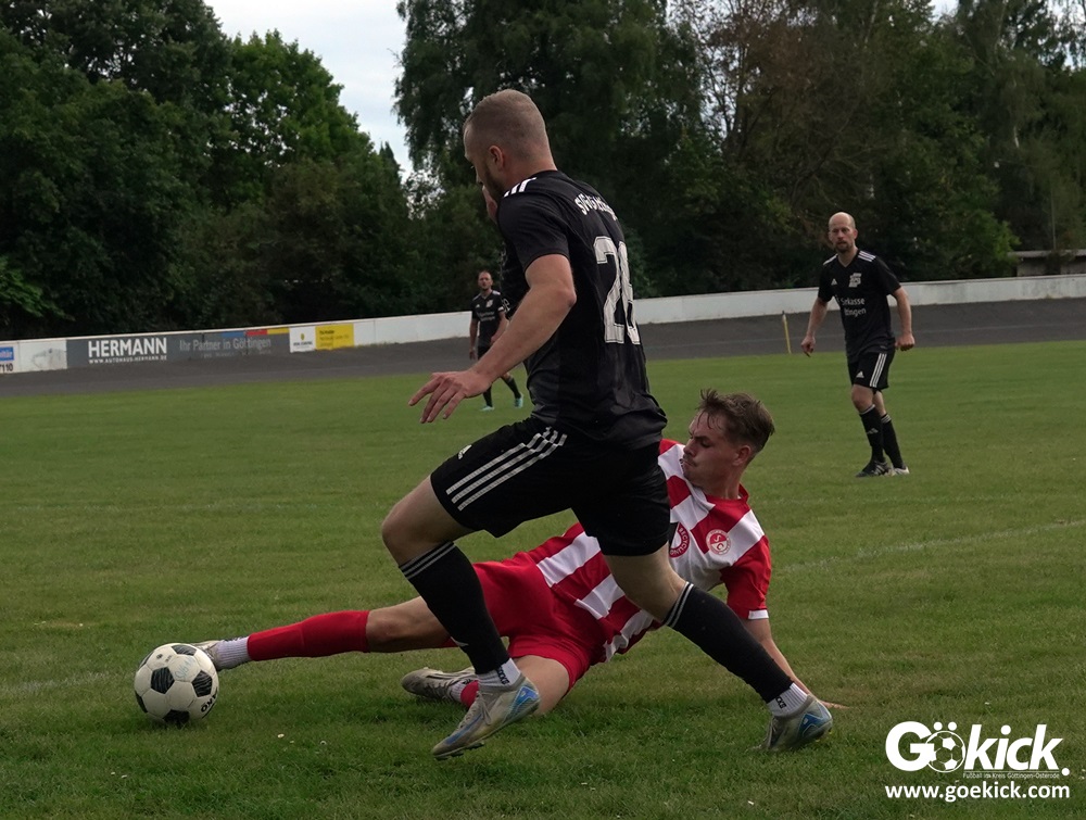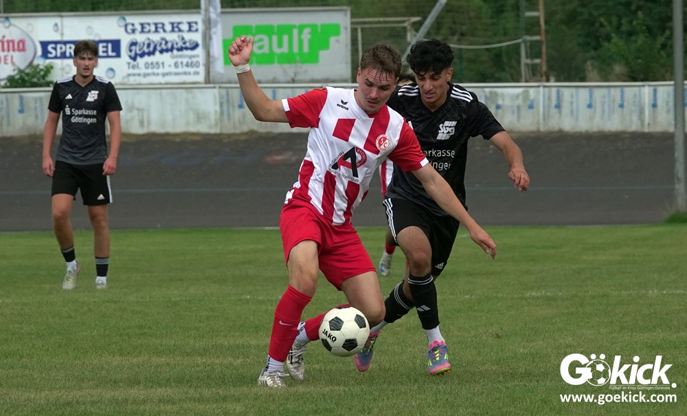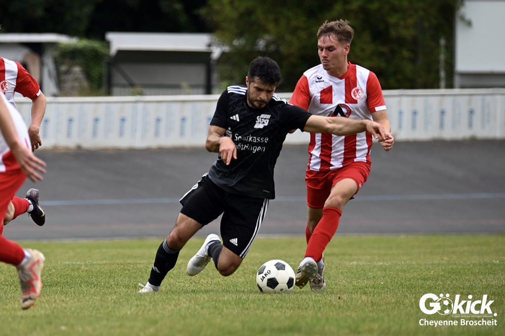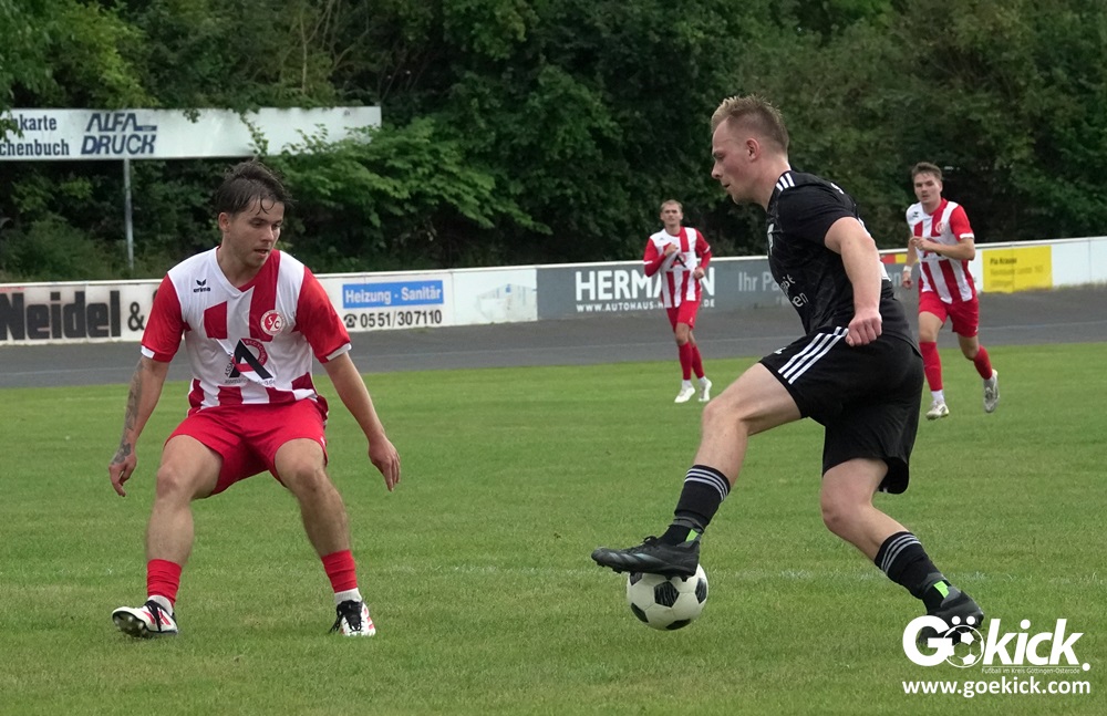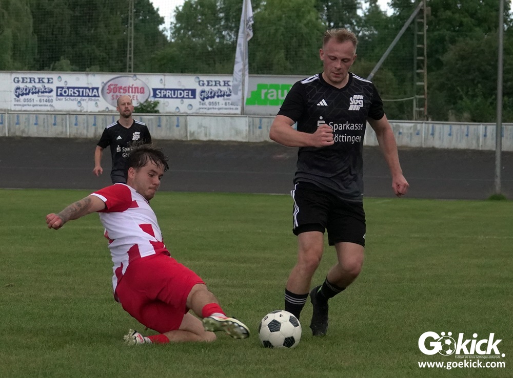Vor 180 Zuschauern entwickelte sich von Beginn an ein einseitiges Spiel. Die SVG ließ den Ball laufen, hielt die Gäste in Schach und drängte früh auf die Führung. In der 34. Minute belohnte Yannis Fischer die drückende Überlegenheit: Nach einer Hereingabe fasste er sich ein Herz und vollendete per Volley sehenswert zum verdienten 1:0.