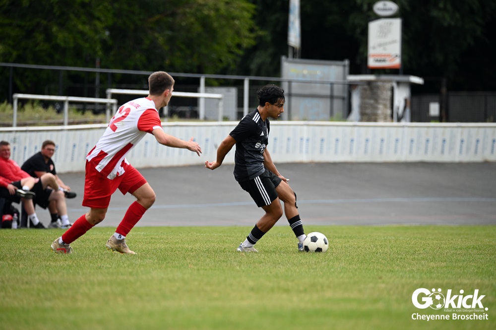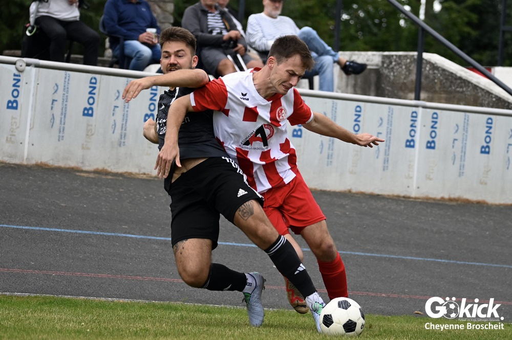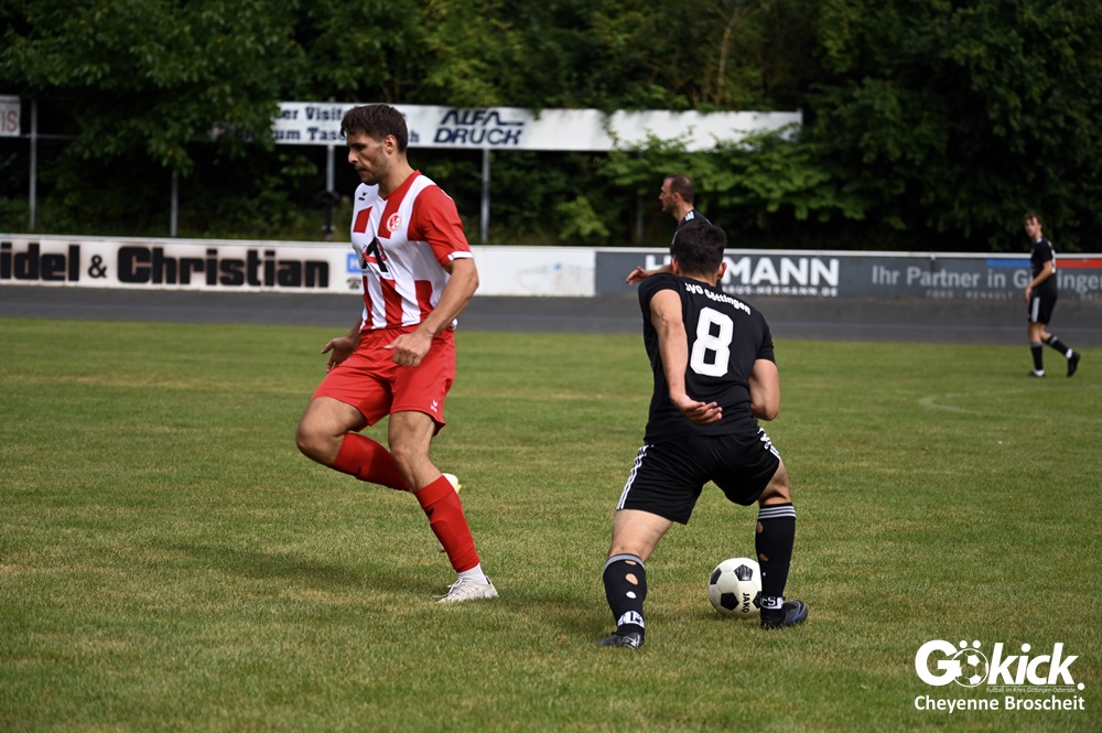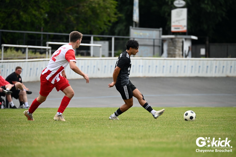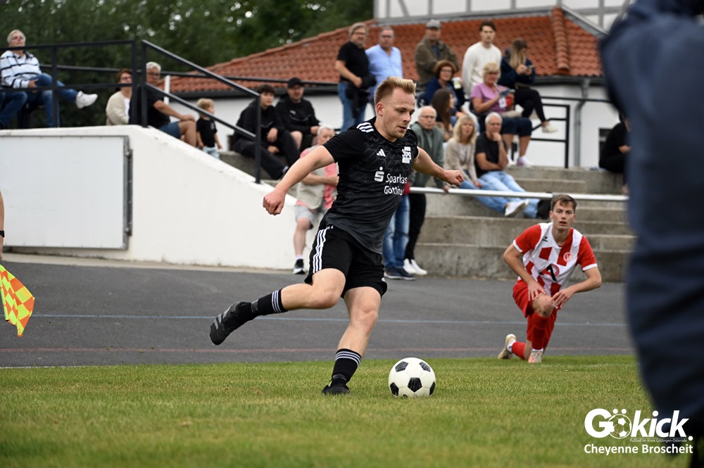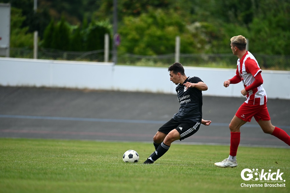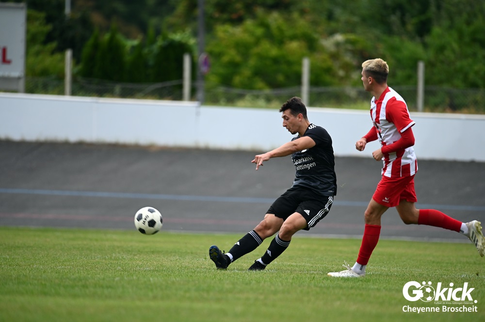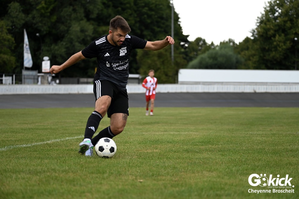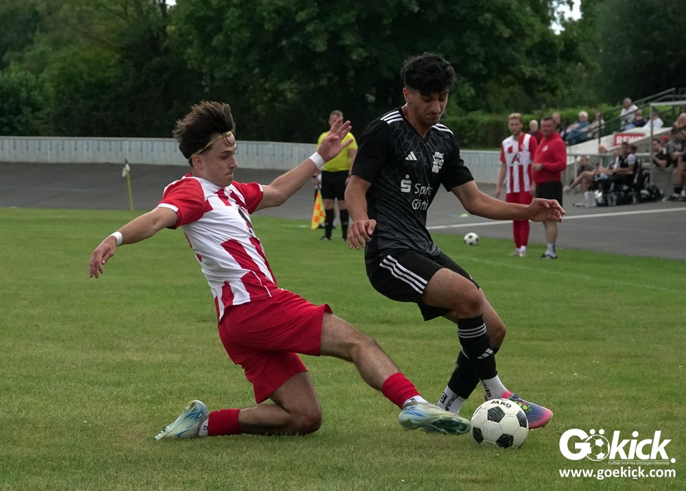 Vor 180 Zuschauern entwickelte sich von Beginn an ein einseitiges Spiel. Die SVG ließ den Ball laufen, hielt die Gäste in Schach und drängte früh auf die Führung. In der 34. Minute belohnte Yannis Fischer die drückende Überlegenheit: Nach einer Hereingabe fasste er sich ein Herz und vollendete per Volley sehenswert zum verdienten 1:0.