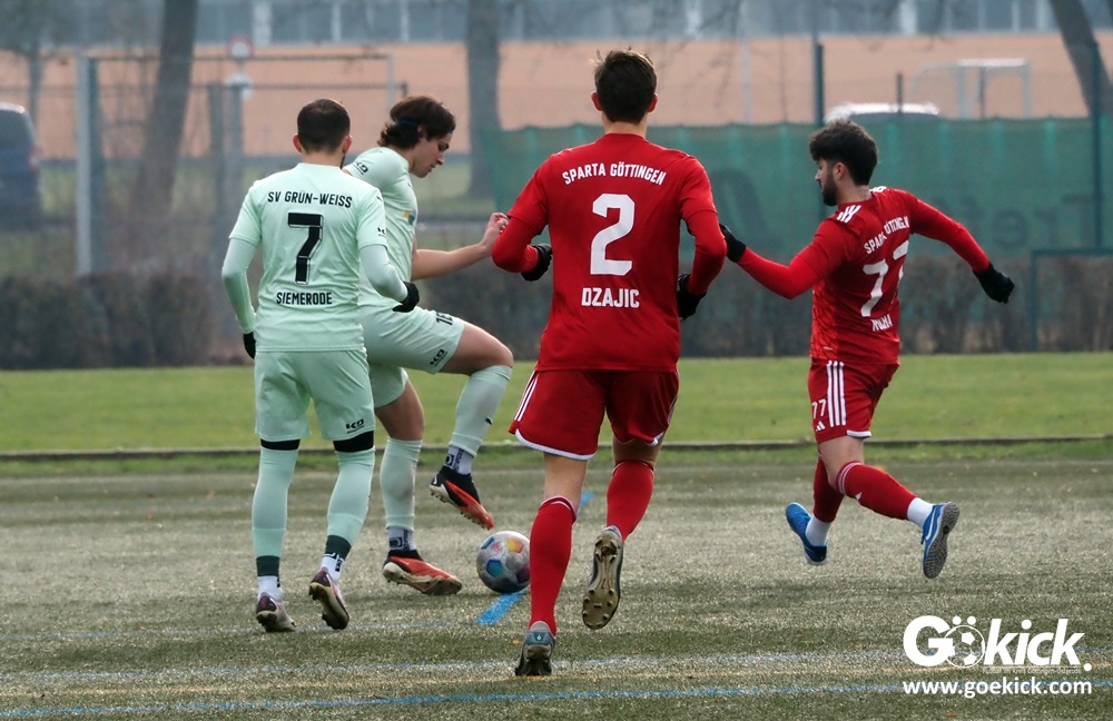 Der Vizemeister der vergangenen Bezirksliga-Saison, Sparta Göttingen, bereitet sich aktuell intensiv auf die Rückrunde in der Bezirksliga vor. Diese beginnt für das Team vom Trainerduo Jan Lohmann und Ali Nasreddine am 23. Februar mit dem Spitzenspiel beim punktgleichen VfR Dostluk Osterode. In einem Testspiel empfing der aktuelle Tabellen-Vierte den Thüringer Landesklassisten SV Grün-Weiß Siemerode. Nach 90 abwechslungsreichen Minuten trennten sich die Kontrahenten am Ende mit 3:3 (1:1)-unentschieden.