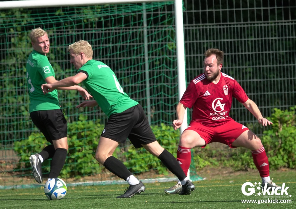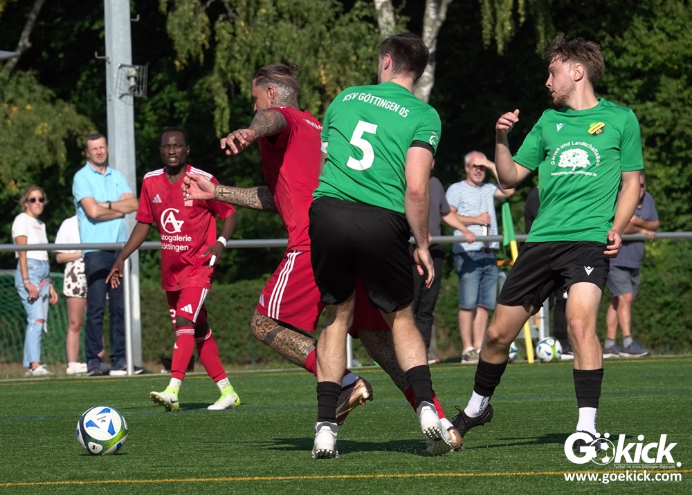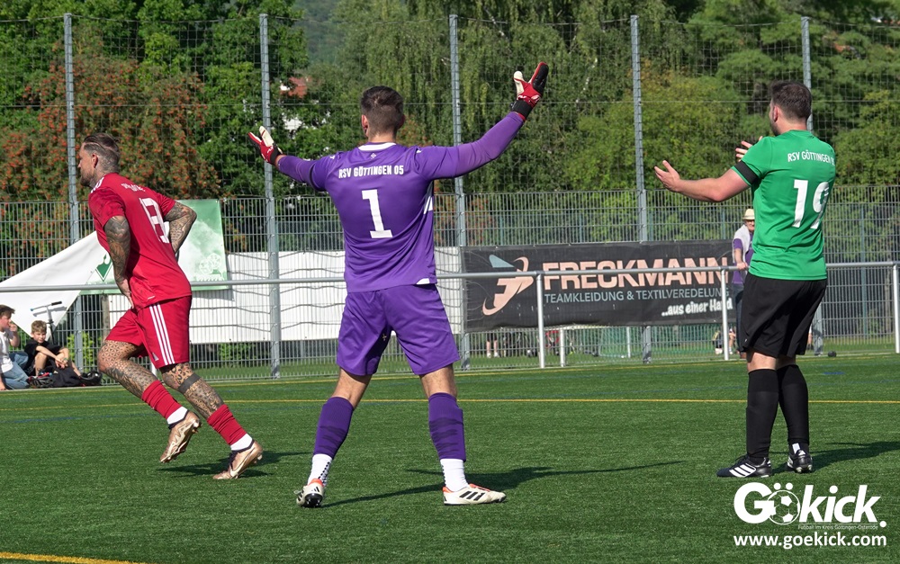 Fast im Gegenzug egalisierte Grzegorz Podolczak (62.) mit einem Volley-Schuss nach einem Pass hinter die RSV-Abwehrkette. Er jubelte so ausgelassen, dass er sich sein Trikot über den Kopf zog – Gelb vom Schiedsrichter Tobias Hillebrand war die Folge. Doch Geismar blieb unbeirrt: Nach einem weiten Einwurf von Lennart Daube, der gegen seinen Ex-Verein besonders motiviert wirkte, traf erneut Jühne zum 4:3 (67.).