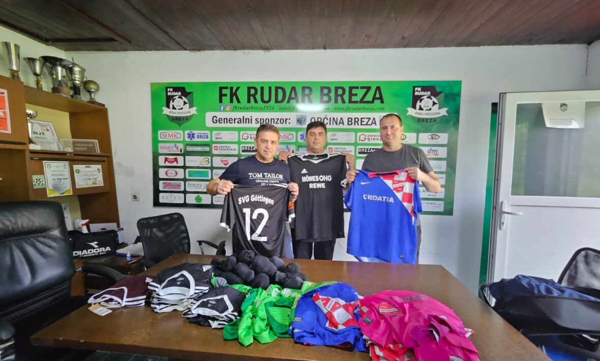 Schöne Geste der heimischen Fußballszene: Esmir Muratovic, aktueller Trainer des SC Rosdorf, hatte über die sozialen Medien um Spenden für den Bosnischen Fußballverein FK Rudar Breza gebeten, der finanzielle nicht auf Rosen gebettet ist, aber dringend einen neuen Trikotsatz benötigt, um auch weiterhin unser liebstes Hobby betreiben zu können. Mario Vopini, aktueller Trainer der zweiten Mannschaft der SG Niedernjesa, und Milan Vujovic vom NK Croatia Göttingen meldeten sich spontan und verschenkten dem schönen Projekt zwei Sätze alter, aber noch schöner Trikots, die Muratovic bei seinem Sommer-Urlaub persönlich übergab. Wir finden: Eine tolle Aktion!