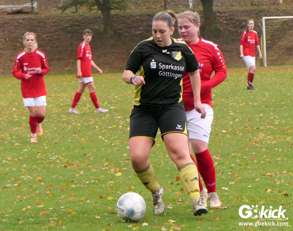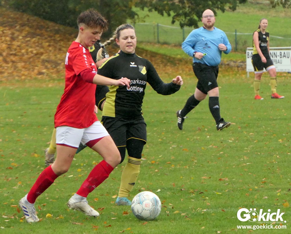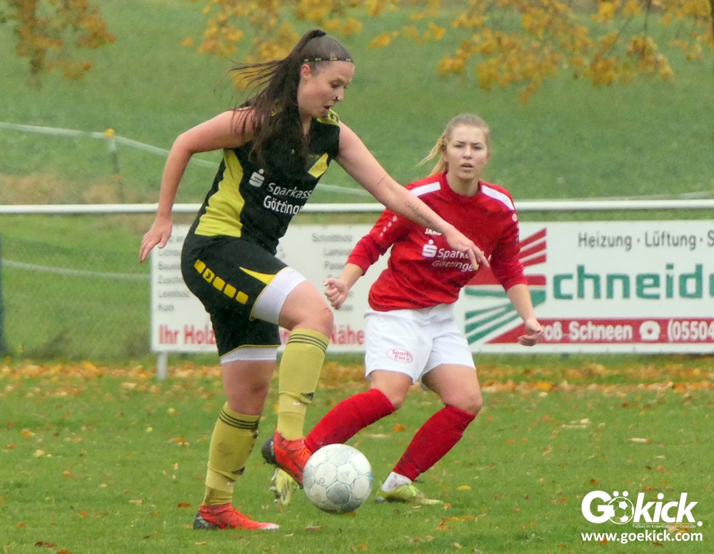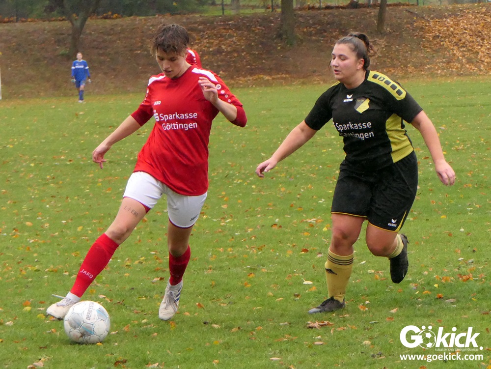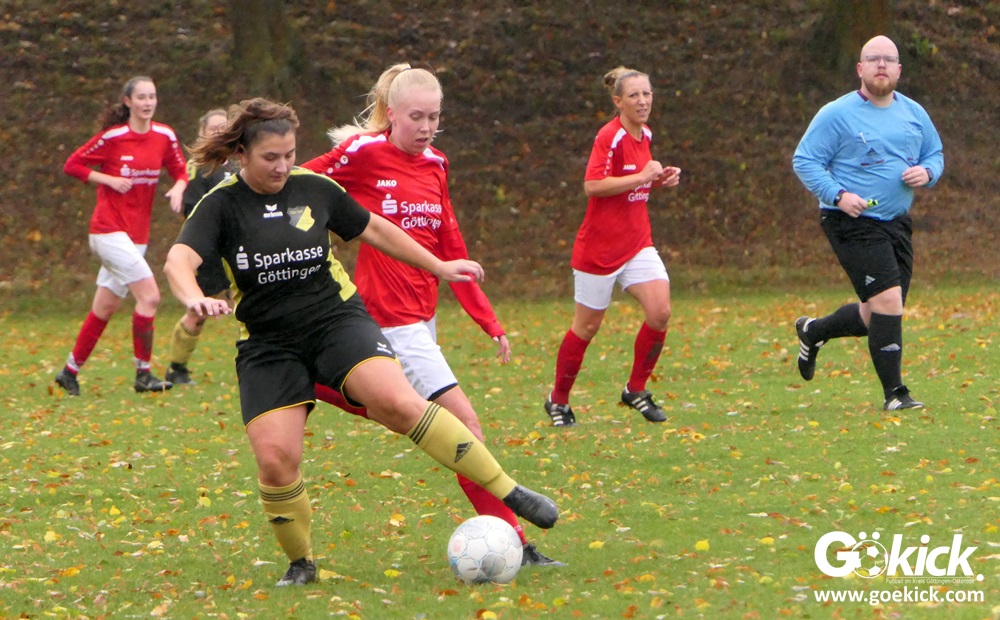 Nach 14 Minuten ging der Favorit von der Göttinger Grätzelstraße durch Jenny Schäfer mit 1:0 in Führung. Die junge Frau traf kürzlich für sogar für die erste Mannschaft im Niedersachsenpokal gegen den TSV Limmer. Mit einem Doppelschlag durch Luisa-Maxime Huss (30.) und Franziska Elges (33.) erhöhte das Eisenbahn-Team auf 3:0 und sorgte damit für eine Vorentscheidung. Doch vorerst ging es in die verdiente Halbzeitpause.