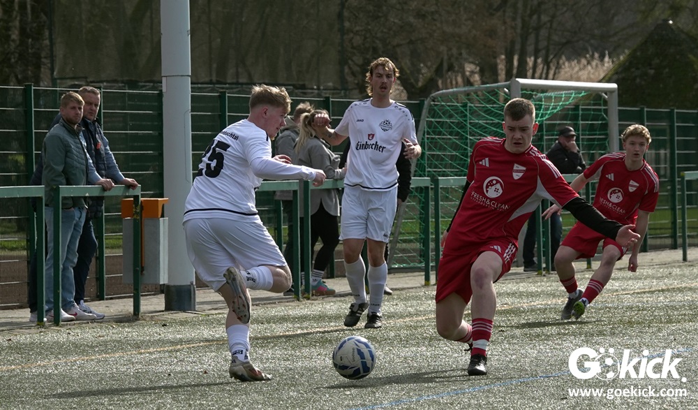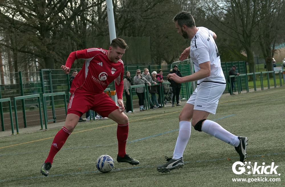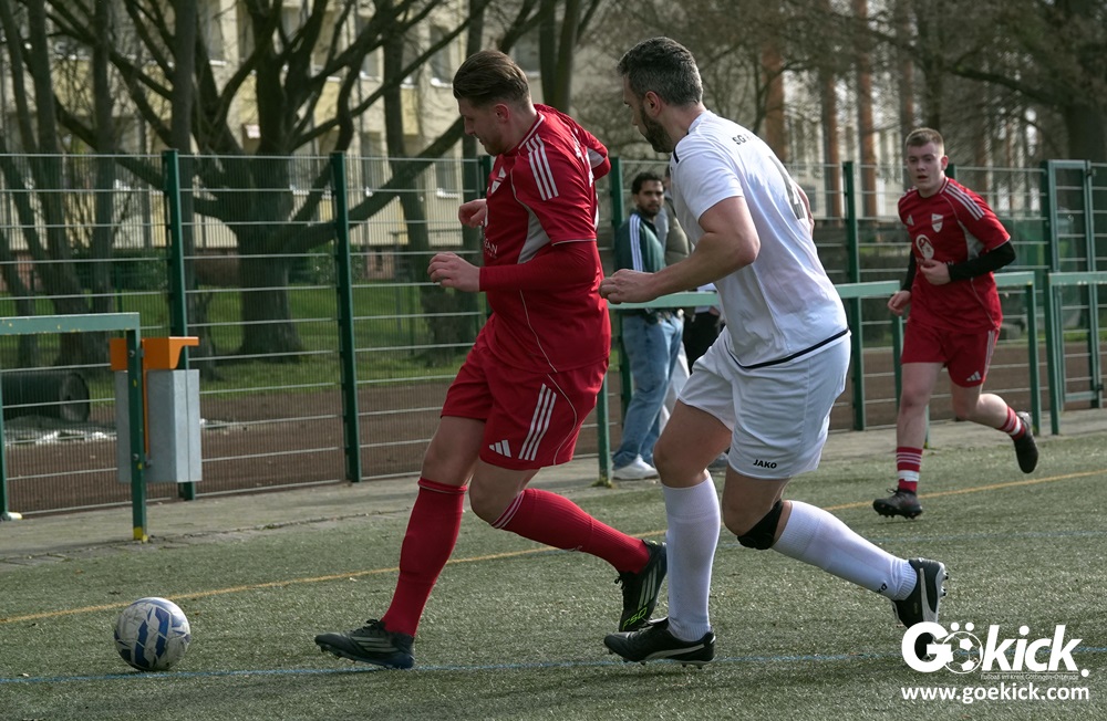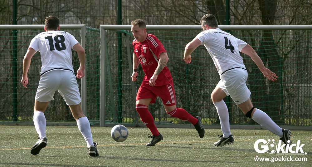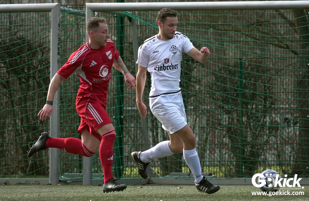 Die Gäste aus der Kreisliga Northeim-Einbeck erwiesen sich früh als ernstzunehmender Prüfstein. Nach einer ausgeglichenen Anfangsphase brachte Merhawi Tesfagergis Berhe die SG Rehbachtal in der 34. Minute in Führung. Die Antwort folgte prompt: Nur eine Minute später vollendete Kapitän Viktor Gerliz nach einer Hereingabe von links zum 1:1. Mit diesem Zwischenstand pfiff Schiedsrichter Leon Peiffer zur Pause.