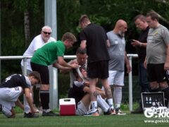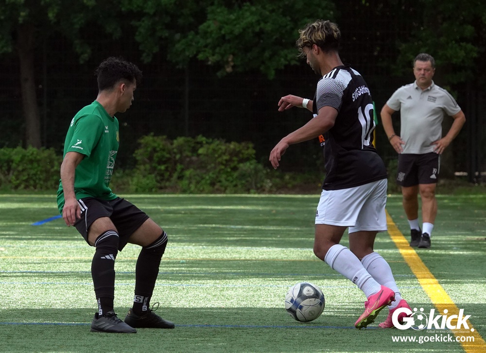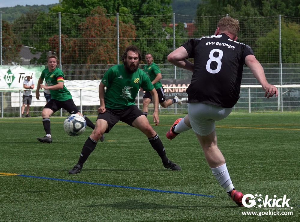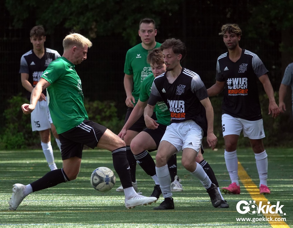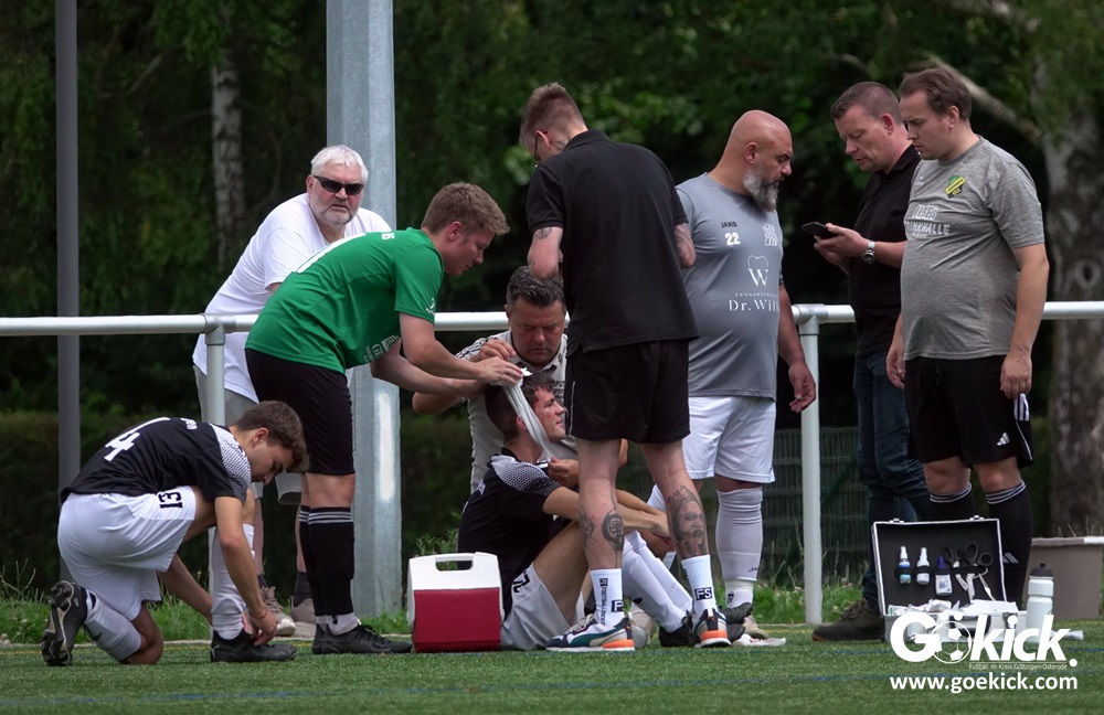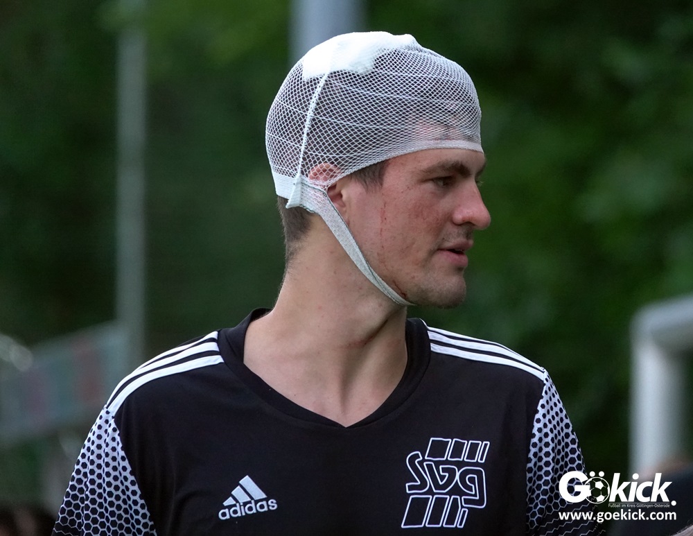 Schon früh deutete sich an, dass die Hausherren auf dem heimischen Kunstrasen die Kontrolle übernehmen würden. Bereits in der 10. Minute traf Lennart Müller nach energischem Einsatz zur Führung. Die Partie erlebte kurz darauf einen Schreckmoment: Emil von Gazen musste nach einem unglücklichen Zusammenprall mit einer Platzwunde ausgewechselt werden. Dank der schnellen und kollegialen Hilfe des RSV-Betreuerteams konnte der SVG-Spieler versorgt werden – mit einem improvisierten Kopfverband, der an Dieter Hoeneß im legendären DFB-Pokalfinale 1982 erinnerte.