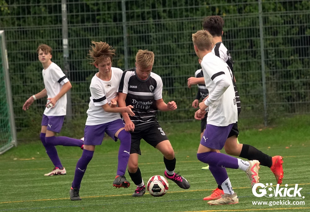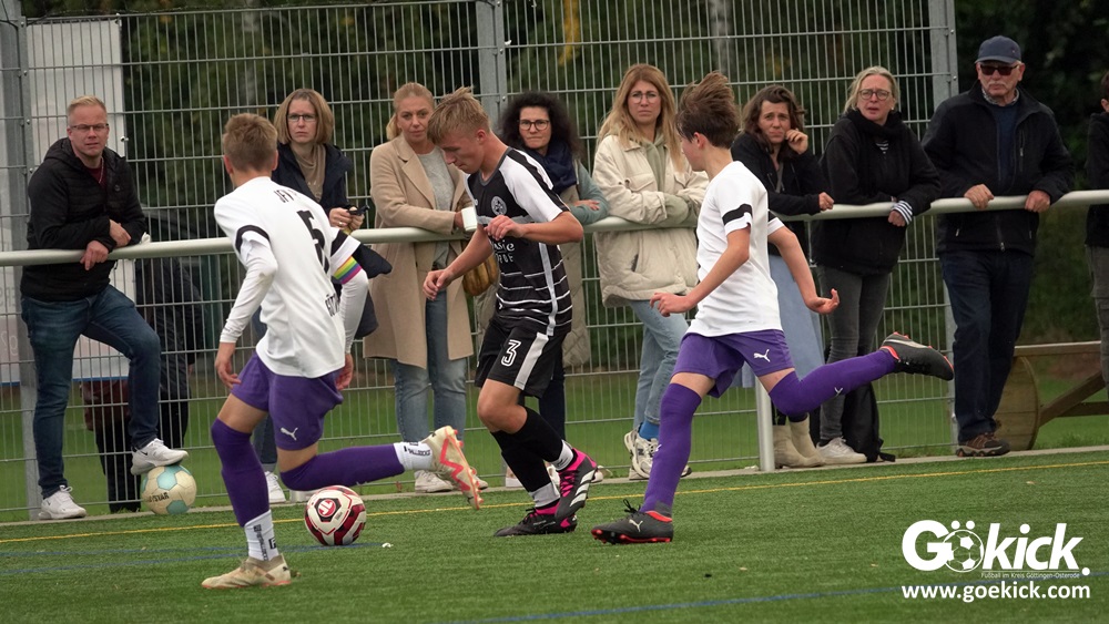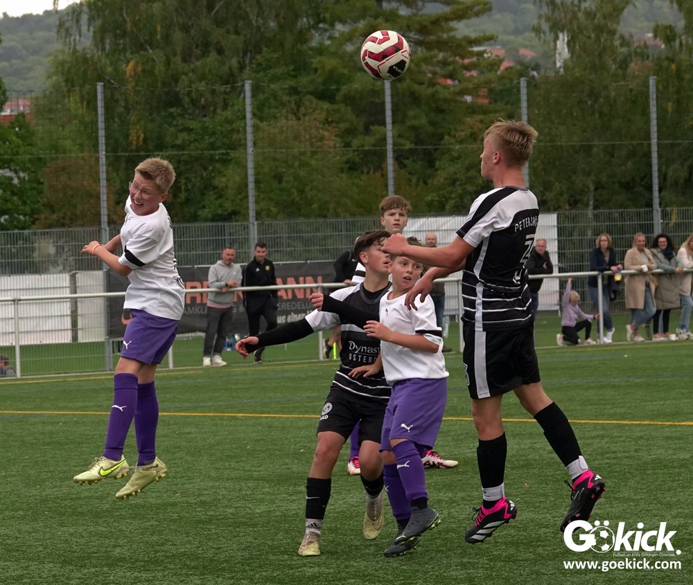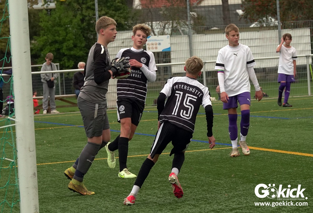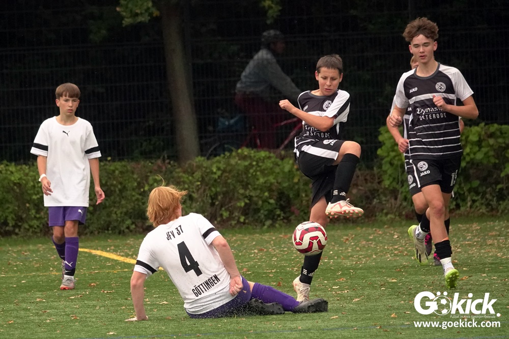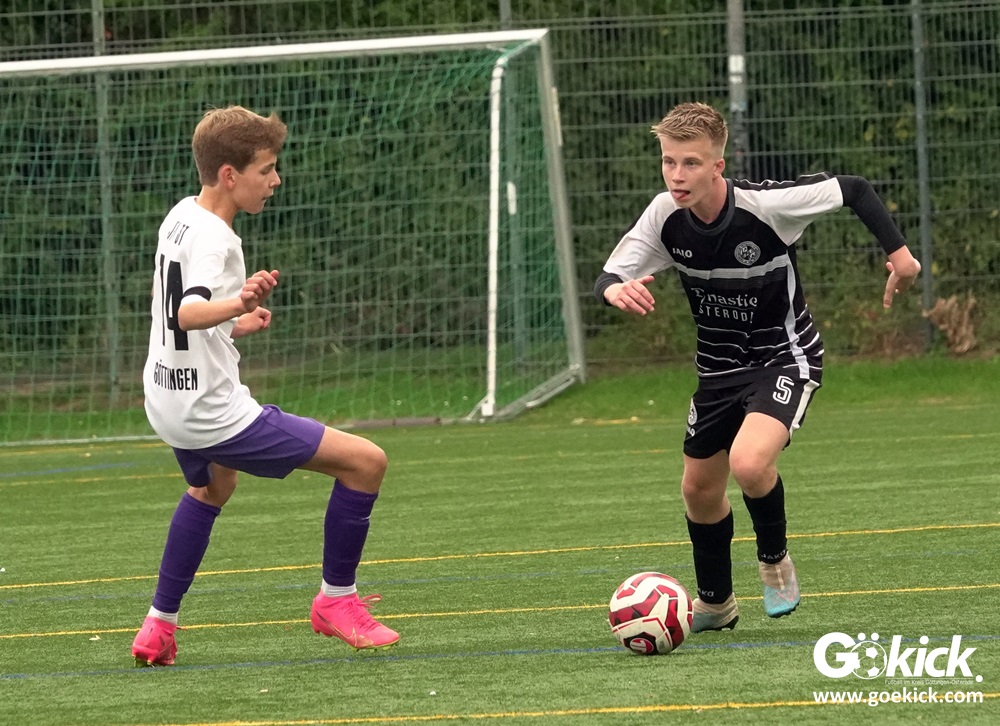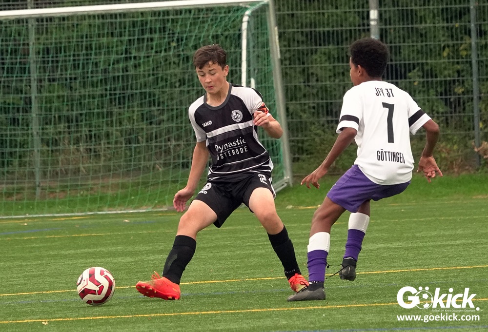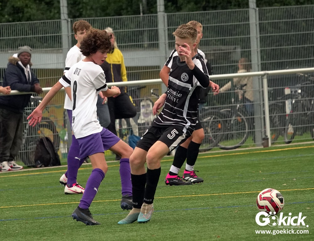 In der C-Jugend-Bezirksliga empfing am vergangenen Samstag die zweite Mannschaft (U14) des JFV 37 Göttingen im Kreis-Derby auf dem Kunstrasenplatz in Göttingen-Geismar den TuSpo Petershütte. Obwohl sich die Harzer Gäste tapfer wehrten, siegte das Heimteam am Ende verdient mit 3:1 (1:0). Mit diesem Sieg bleibt das Göttinger Team von Trainer Robin Blumenstein die einzige ungeschlagene Mannschaft der Spielklasse. Der JFV liegt mit 13 Punkten aus fünf Spielen auf Rang zwei hinter dem Spitzenreiter JSG Goslar. Der TuSpo Petershütte bleibt mit sechs Niederlagen punktloses Schlusslicht der Bezirksliga.