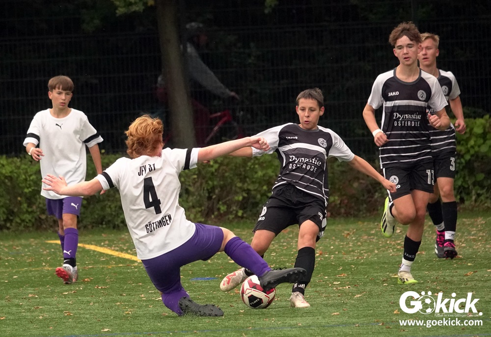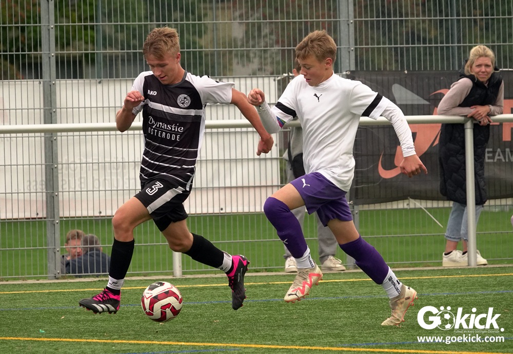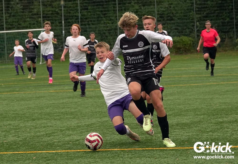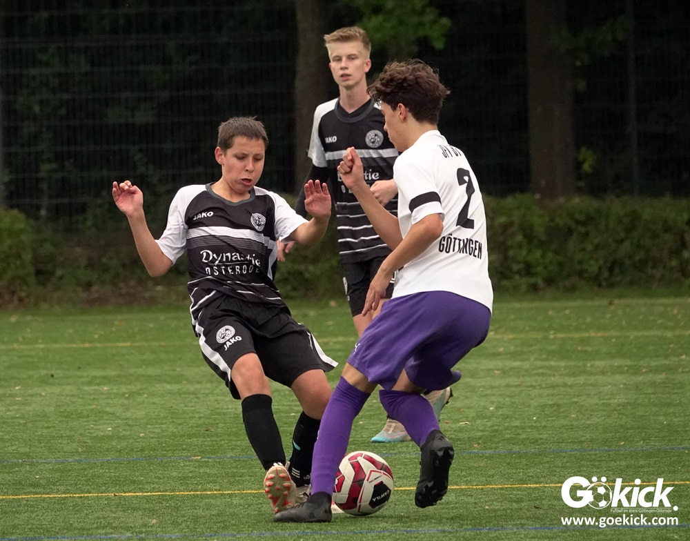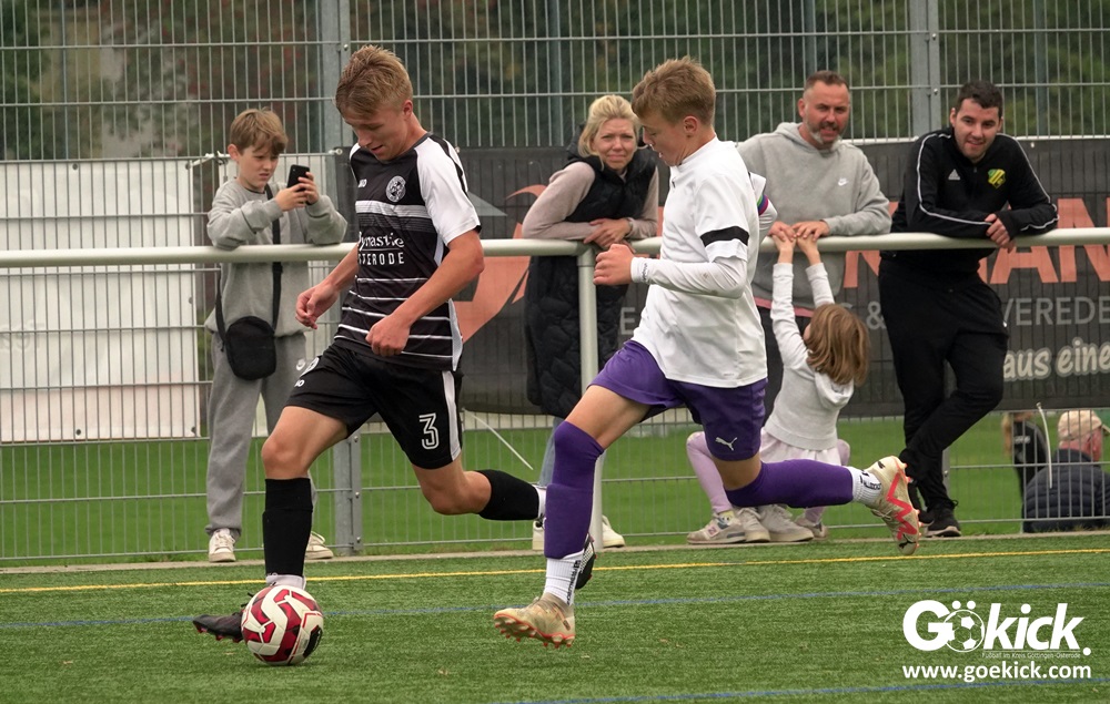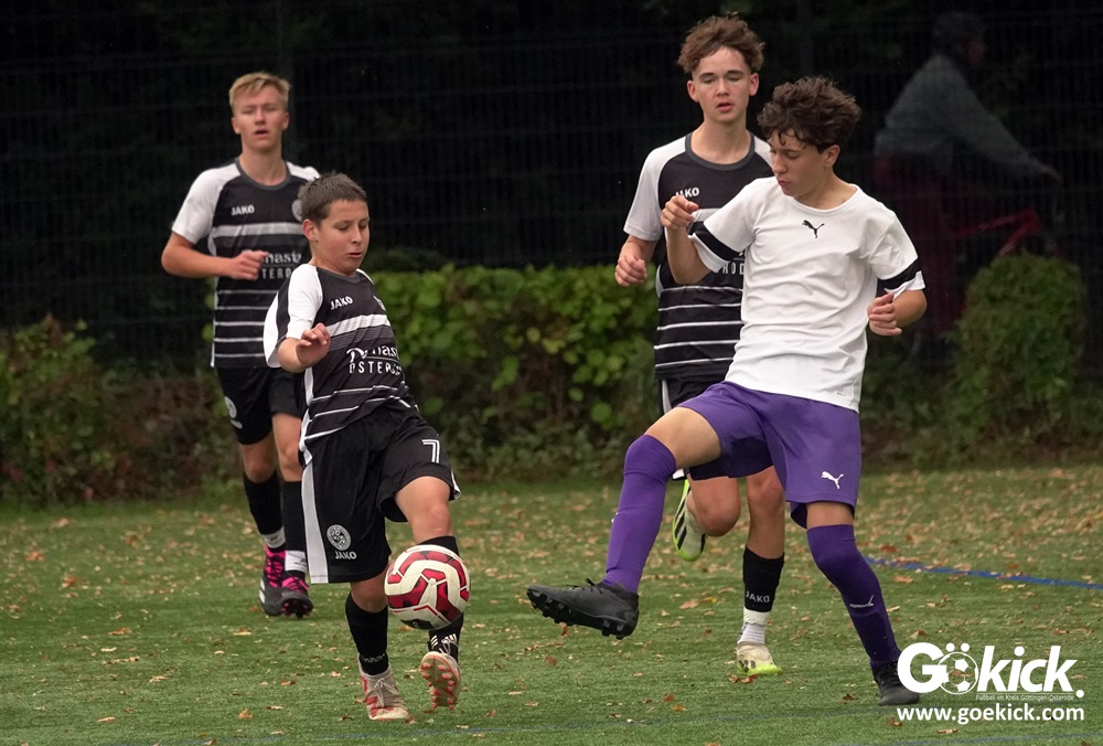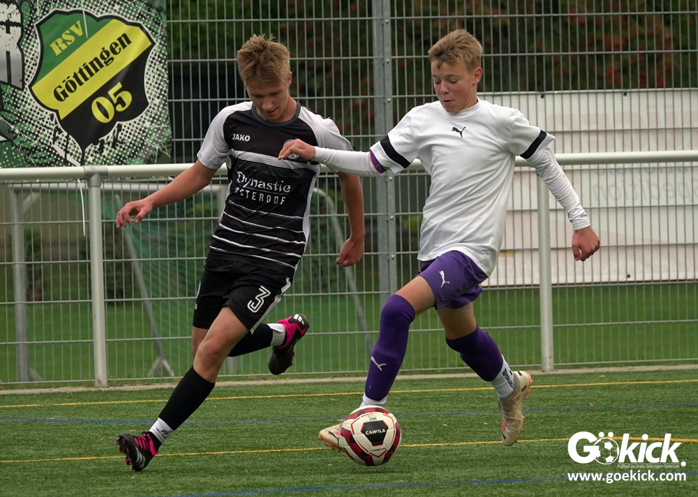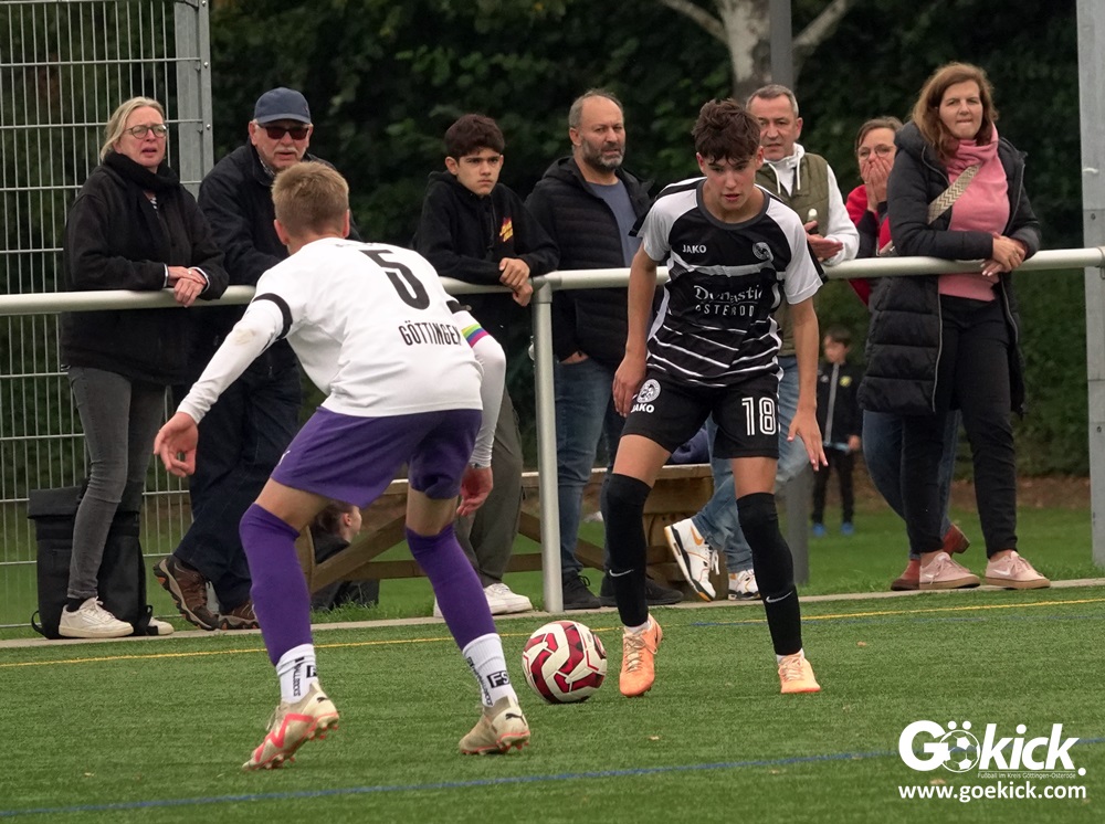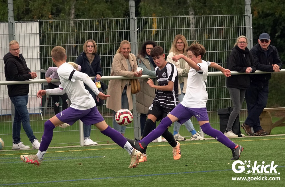 In der C-Jugend-Bezirksliga empfing am vergangenen Samstag die zweite Mannschaft (U14) des JFV 37 Göttingen im Kreis-Derby auf dem Kunstrasenplatz in Göttingen-Geismar den TuSpo Petershütte. Obwohl sich die Harzer Gäste tapfer wehrten, siegte das Heimteam am Ende verdient mit 3:1 (1:0). Mit diesem Sieg bleibt das Göttinger Team von Trainer Robin Blumenstein die einzige ungeschlagene Mannschaft der Spielklasse. Der JFV liegt mit 13 Punkten aus fünf Spielen auf Rang zwei hinter dem Spitzenreiter JSG Goslar. Der TuSpo Petershütte bleibt mit sechs Niederlagen punktloses Schlusslicht der Bezirksliga.