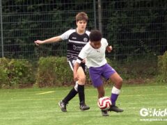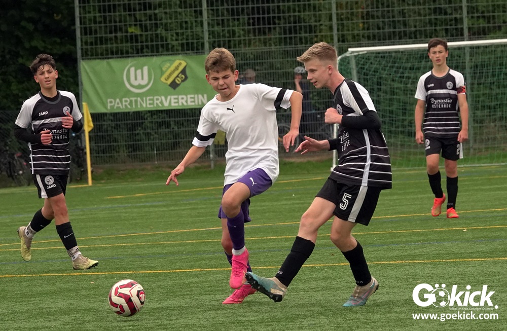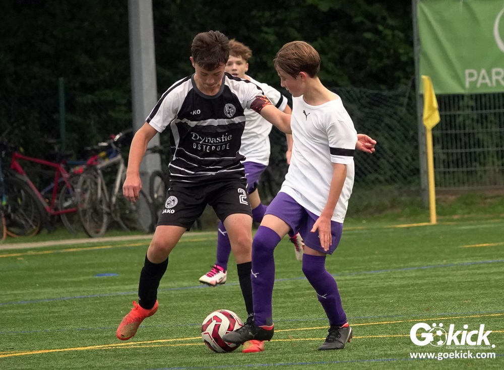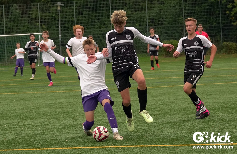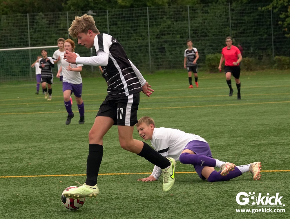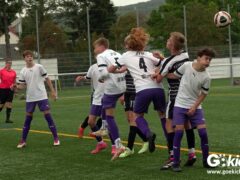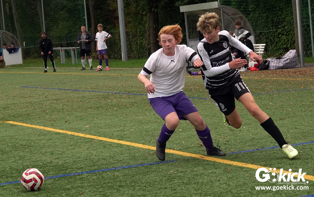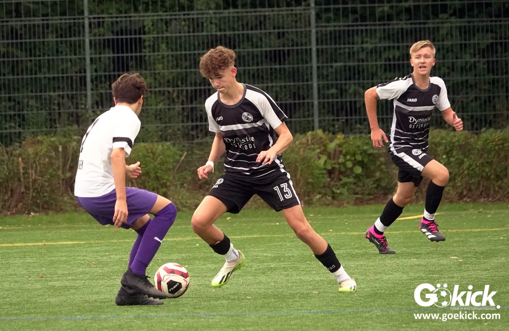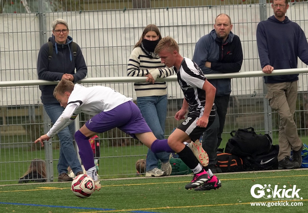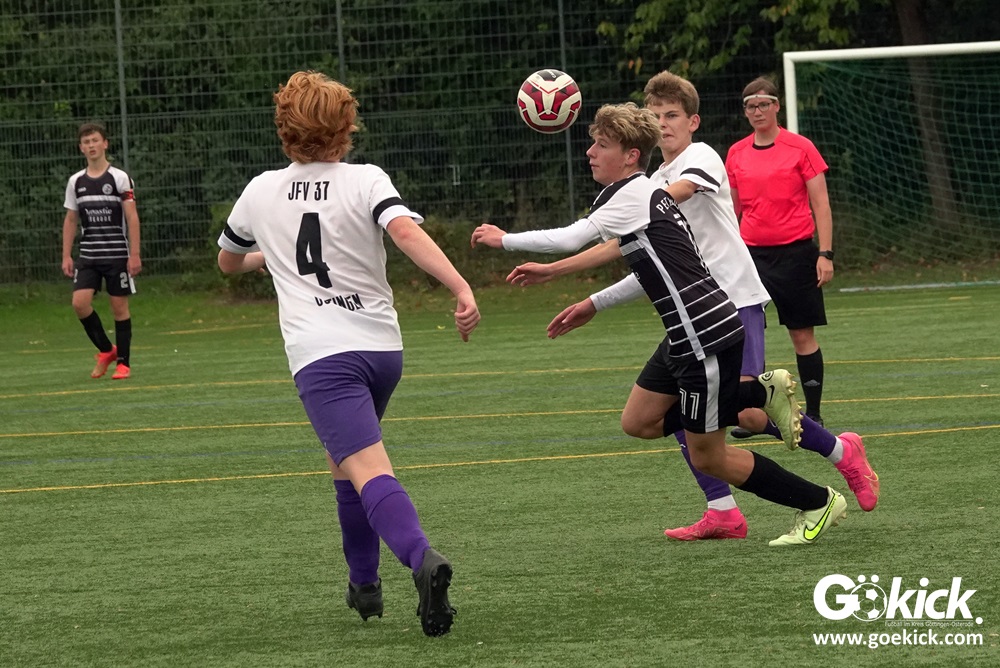 Auch die Anfangsphase der zweiten Halbzeit war ausgeglichen. Es dauerte zwanzig Minuten, ehe erneut Nicolas Koch das 2:0 für die Hausherren erzielte und damit für eine Vorentscheidung sorgte. Zwei Minuten vor dem regulären Ende der Spielzeit versenkte Mats Peter Amos einen Elfmeter zum 3:0 für das lila Team. Der Ehrentreffer für die Gäste, die nicht wie ein Tabellenletzter auftraten, gelang Leon Greve in der Nachspielzeit. Der JFV 37 gewann dennoch verdient mit 3:1.