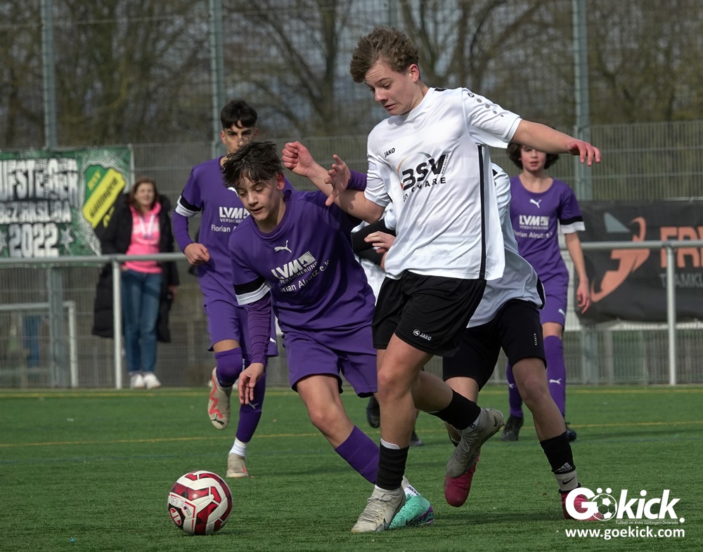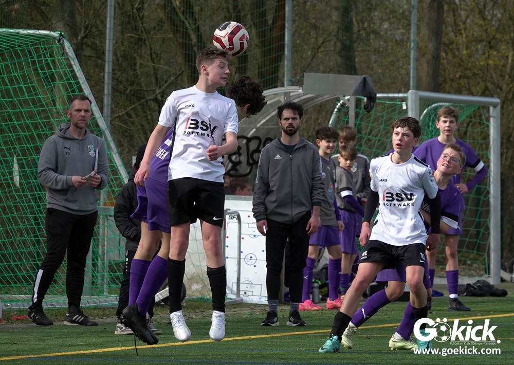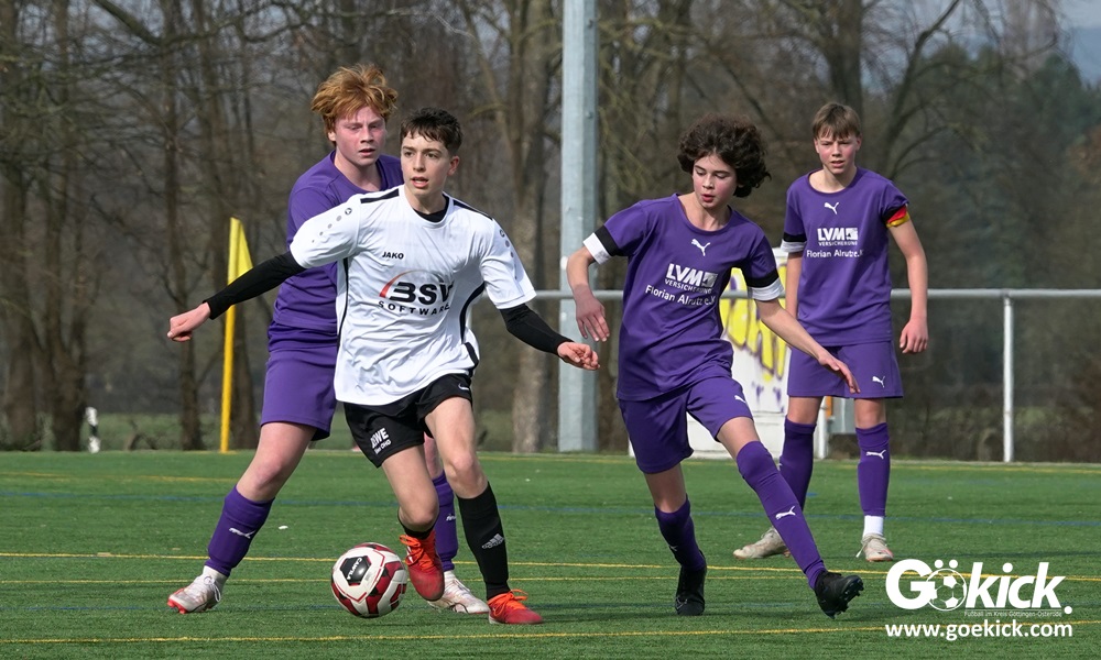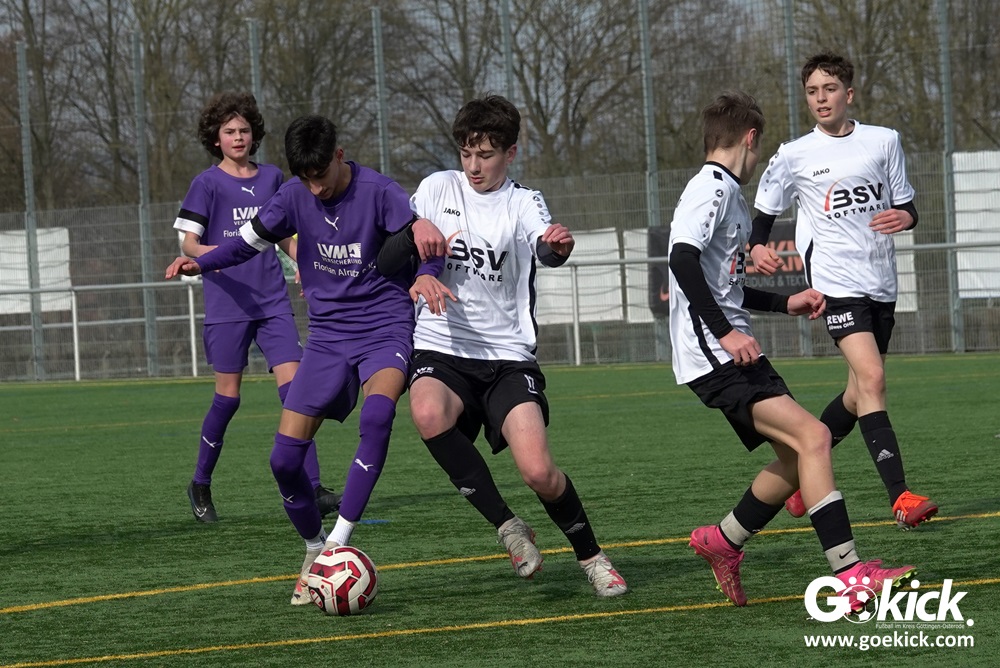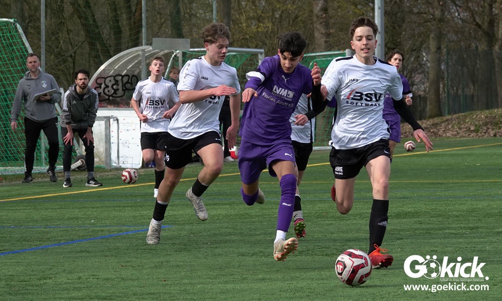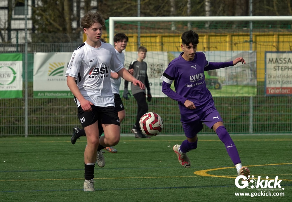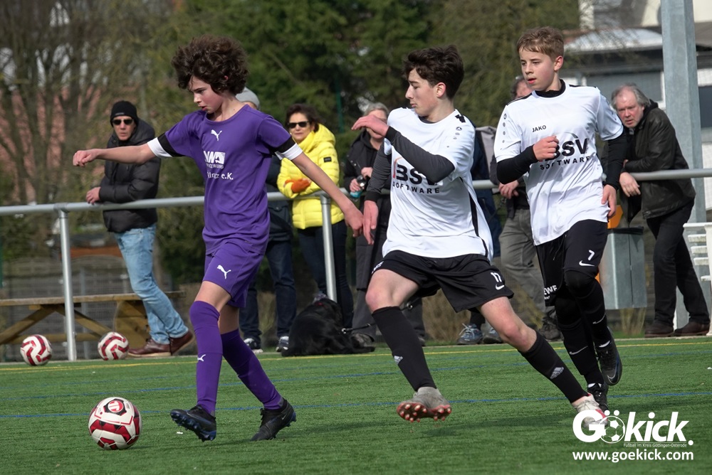 Der C-Jugend-Bezirksligist JFV 37 Göttingen U14 hat in Vorbereitung auf die im April beginnende Rückrunde einen weiteren Test absolviert. Das Team vom Trainerduo Robin Blumenstein und Lüder Sudmann hatte dazu die in der Kreisliga spielende C-Jugend des JFV-Stammvereins SVG Göttingen geladen. Auf dem Kunstrasenplatz im Göttinger Stadtteil Geismar gewann der JFV zwar erwartungsgemäß mit 3:2 (1:1), hatte dabei aber mehr Mühe als prognostiziert.