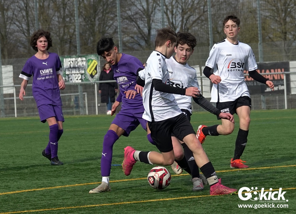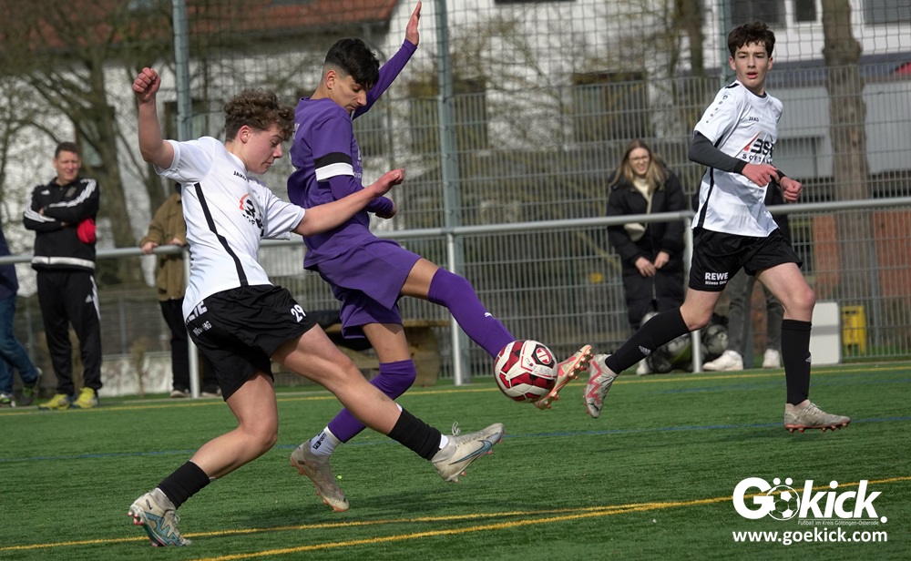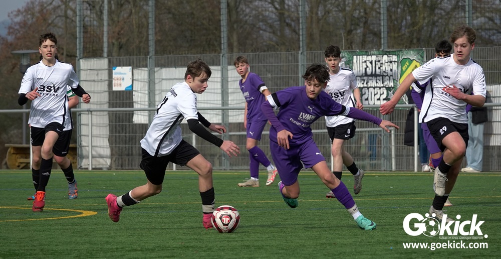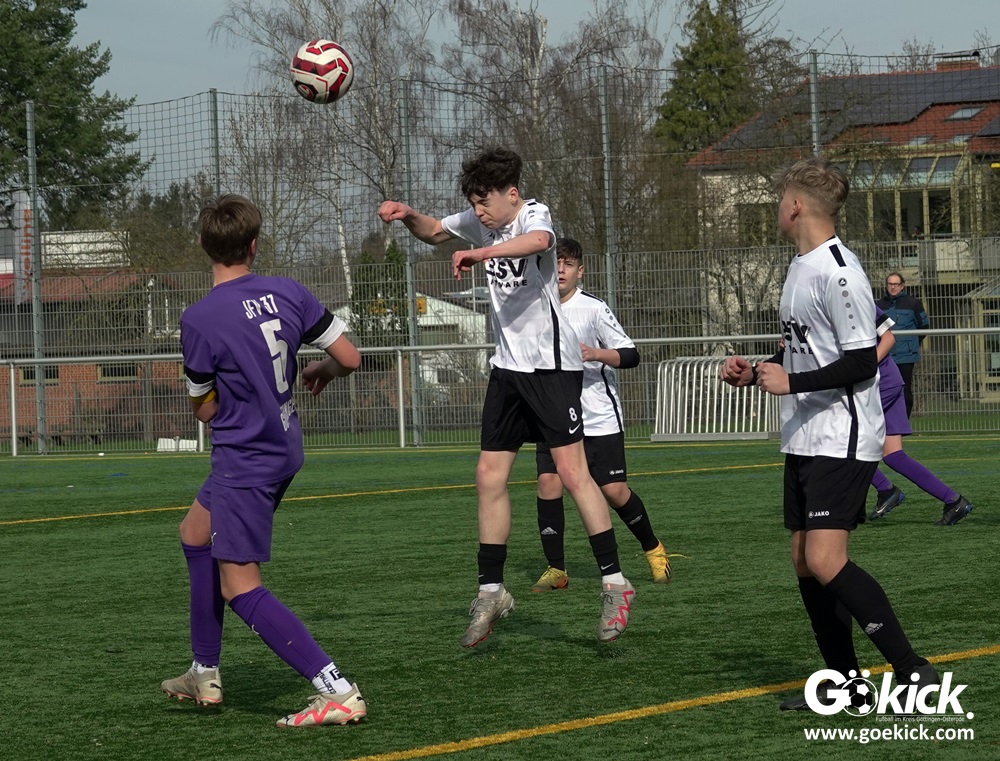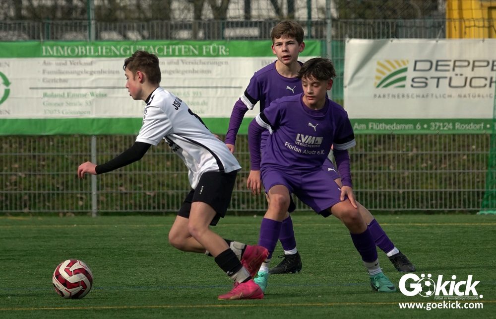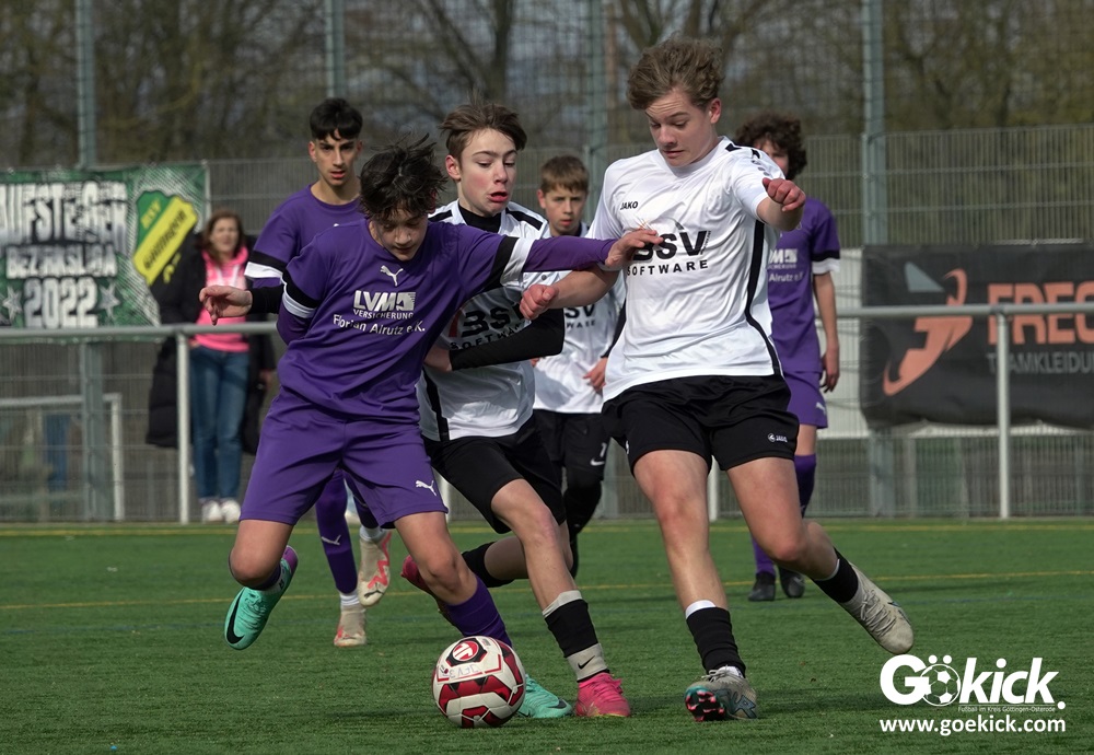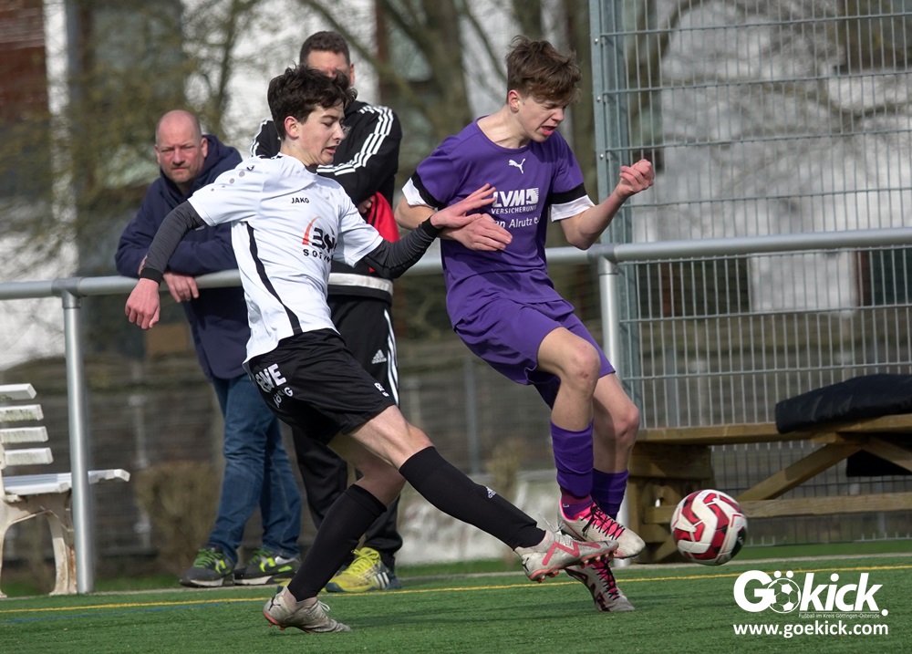 Der C-Jugend-Bezirksligist JFV 37 Göttingen U14 hat in Vorbereitung auf die im April beginnende Rückrunde einen weiteren Test absolviert. Das Team vom Trainerduo Robin Blumenstein und Lüder Sudmann hatte dazu die in der Kreisliga spielende C-Jugend des JFV-Stammvereins SVG Göttingen geladen. Auf dem Kunstrasenplatz im Göttinger Stadtteil Geismar gewann der JFV zwar erwartungsgemäß mit 3:2 (1:1), hatte dabei aber mehr Mühe als prognostiziert.