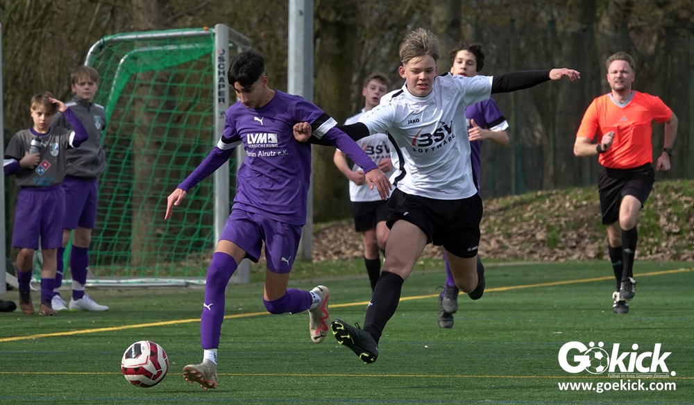 Der Gast vom Sandweg ging nach sieben Minuten durch Fynn Luca Weitemeier mit 1:0 in Führung. Nach 27 Minuten gelang Mats Peter Amos der Ausgleich zum 1:1. Dabei blieb es bis zum Pausenpfiff von Schiedsrichter Benjamin Dwenger.
