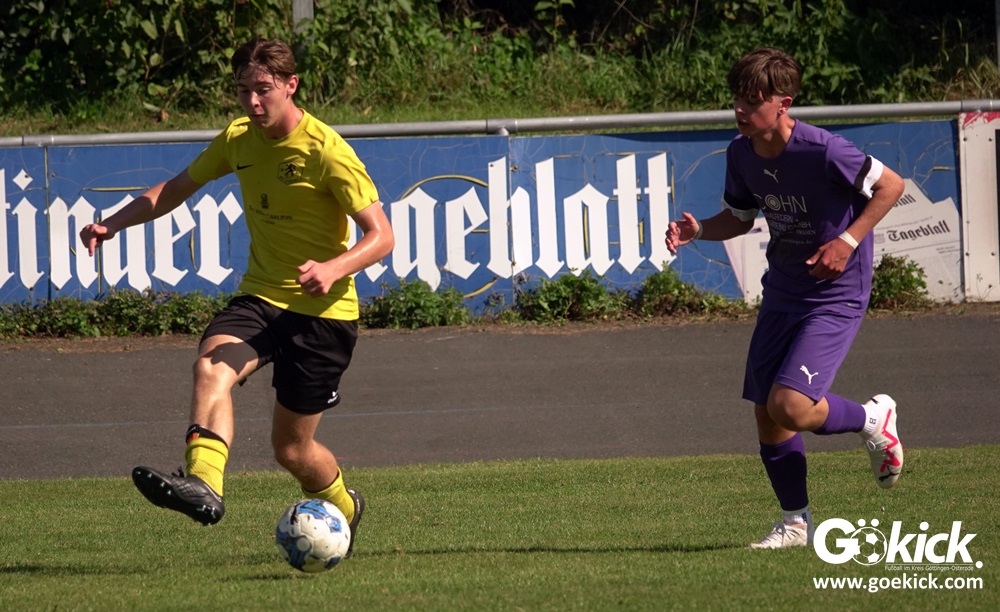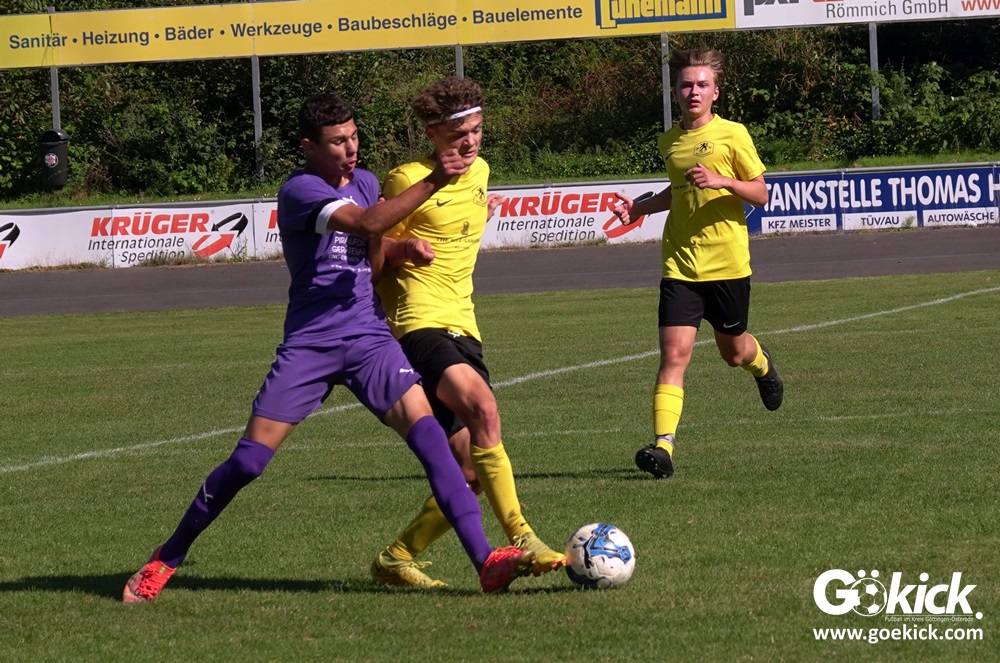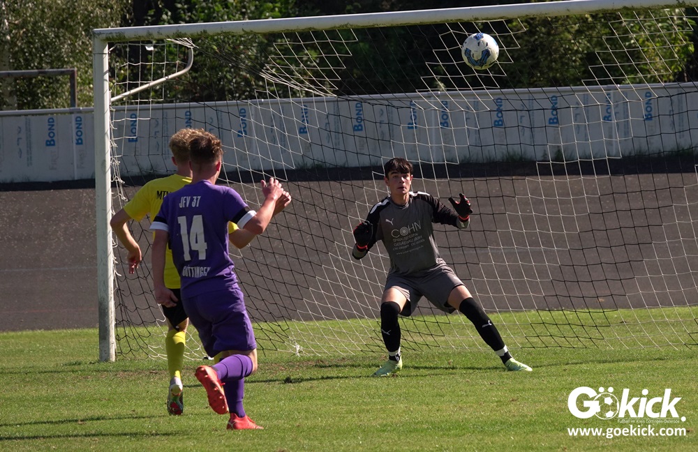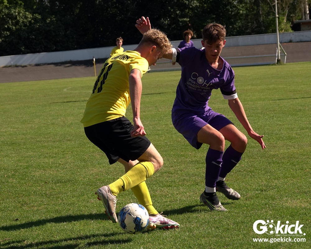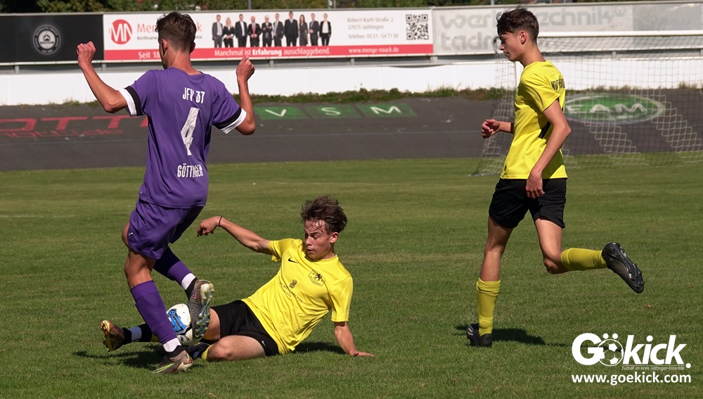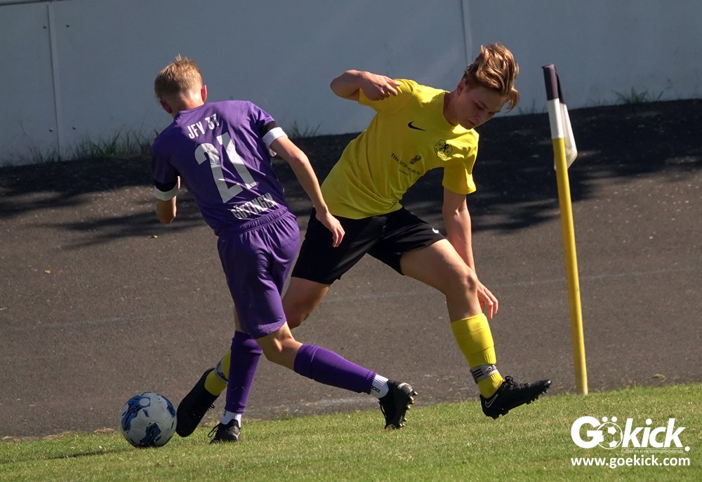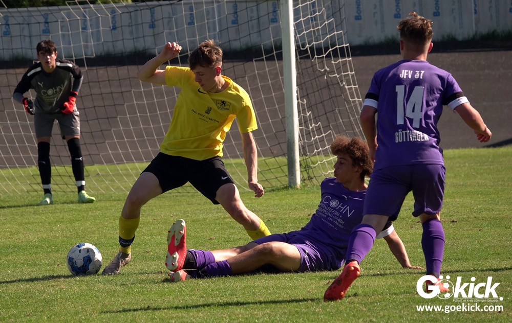 Bis zur Halbzeit hielt der JFV 37 mit großer Einsatzbereitschaft noch gut mit. Das 0:1 nach 15 Minuten entsprang einem unglücklichen Eigentor von Felix Hutecker, der eine scharfe Hereingabe bei seinem Rettungsversuch in die eigenen Maschen abfälschte. Auch das 2:0 war unglücklich: Schiedsrichter Alexander Pradier zeigte praktisch mit dem Halbzeitpfiff auf den Elfmeterpunkt. Der Schütze ließ sich die Chance nicht entgehen.