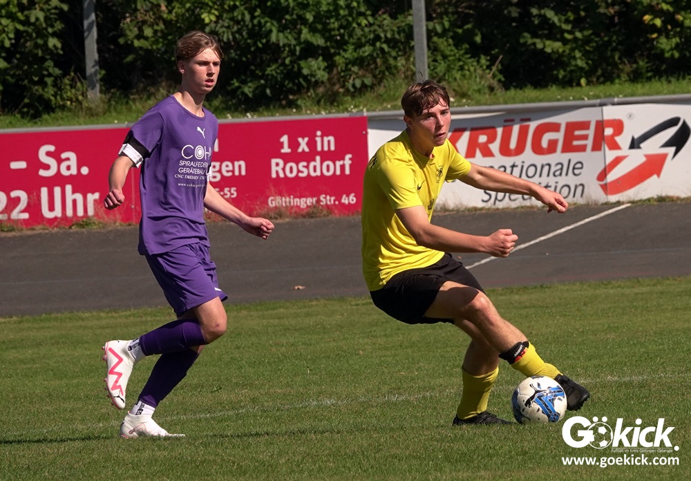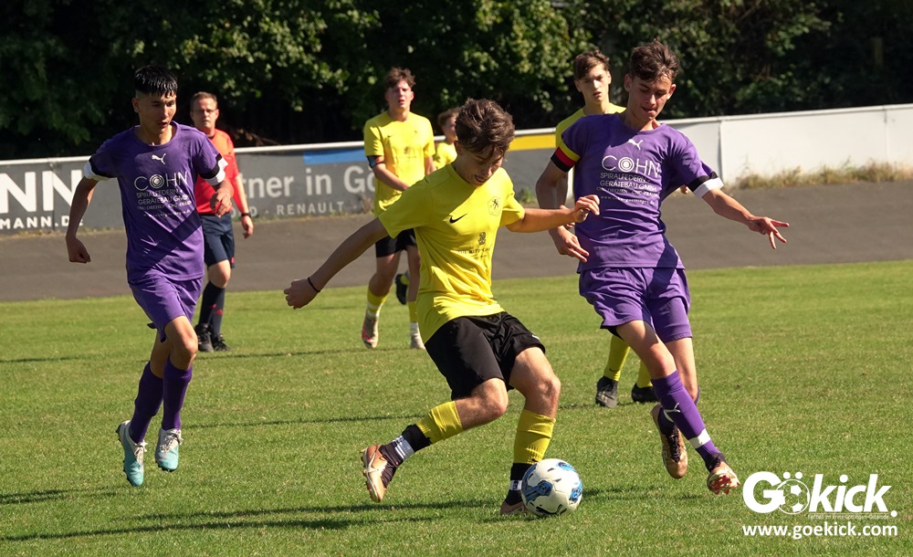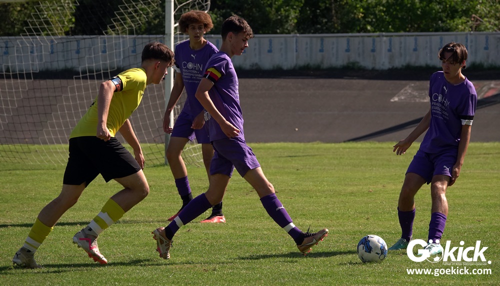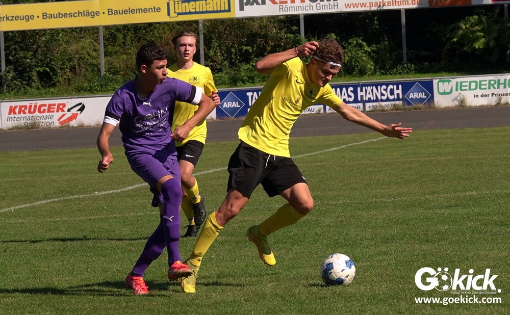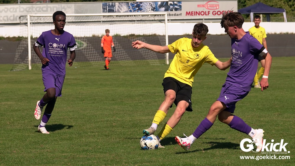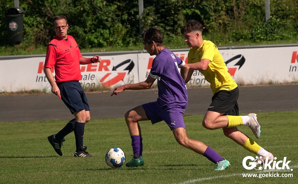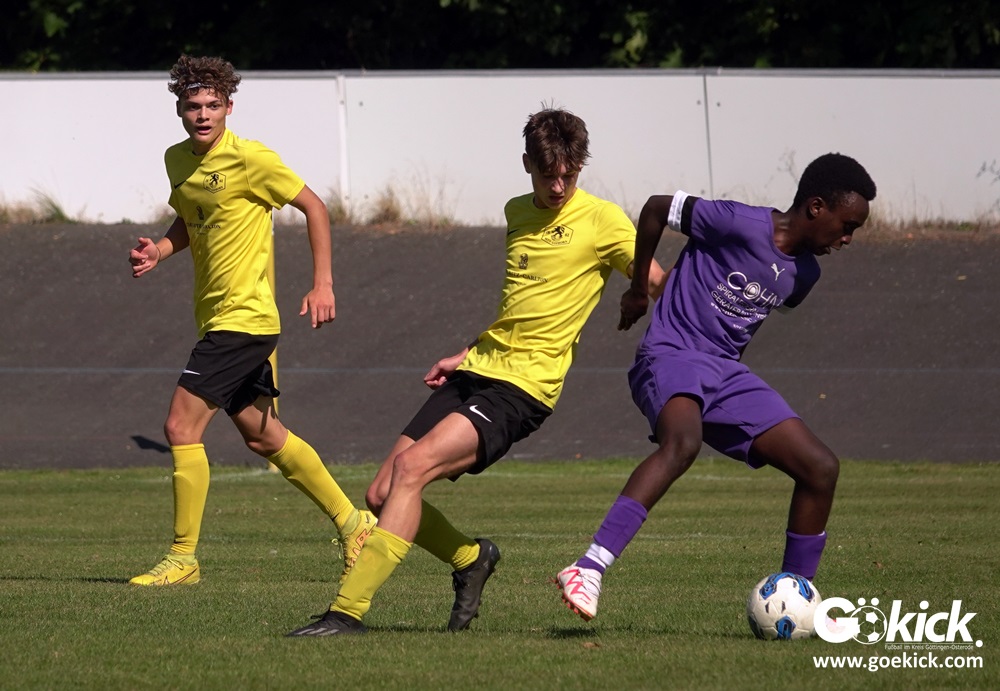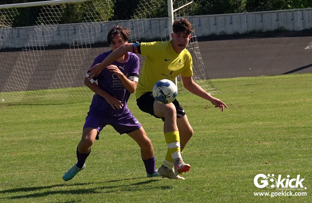 Bis zur Halbzeit hielt der JFV 37 mit großer Einsatzbereitschaft noch gut mit. Das 0:1 nach 15 Minuten entsprang einem unglücklichen Eigentor von Felix Hutecker, der eine scharfe Hereingabe bei seinem Rettungsversuch in die eigenen Maschen abfälschte. Auch das 2:0 war unglücklich: Schiedsrichter Alexander Pradier zeigte praktisch mit dem Halbzeitpfiff auf den Elfmeterpunkt. Der Schütze ließ sich die Chance nicht entgehen.