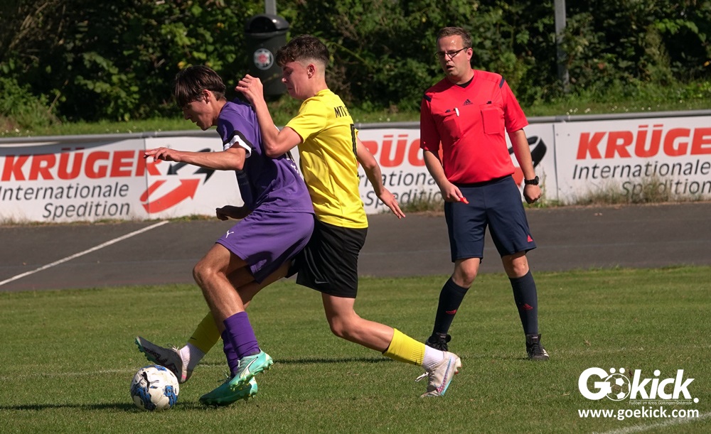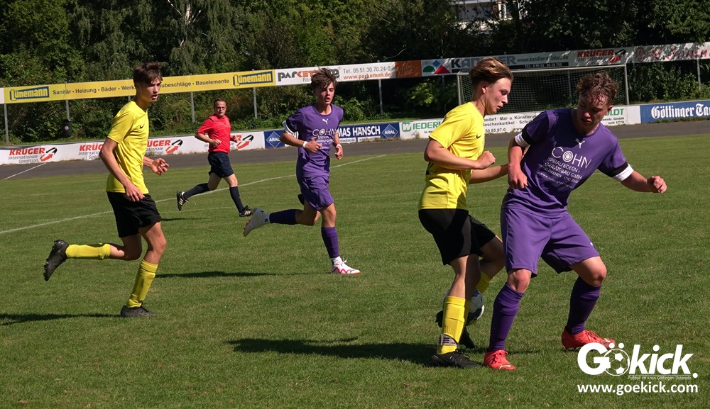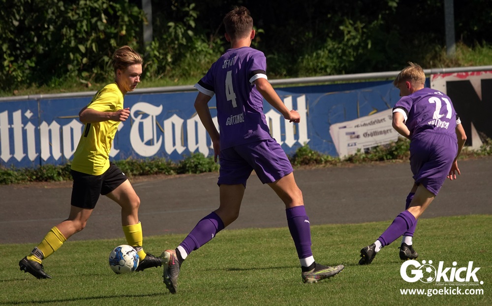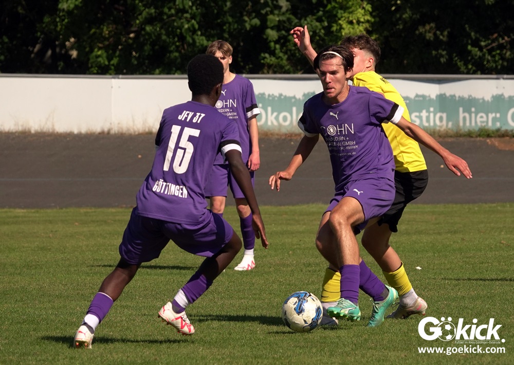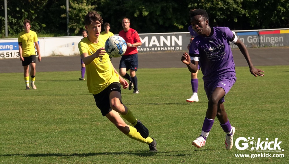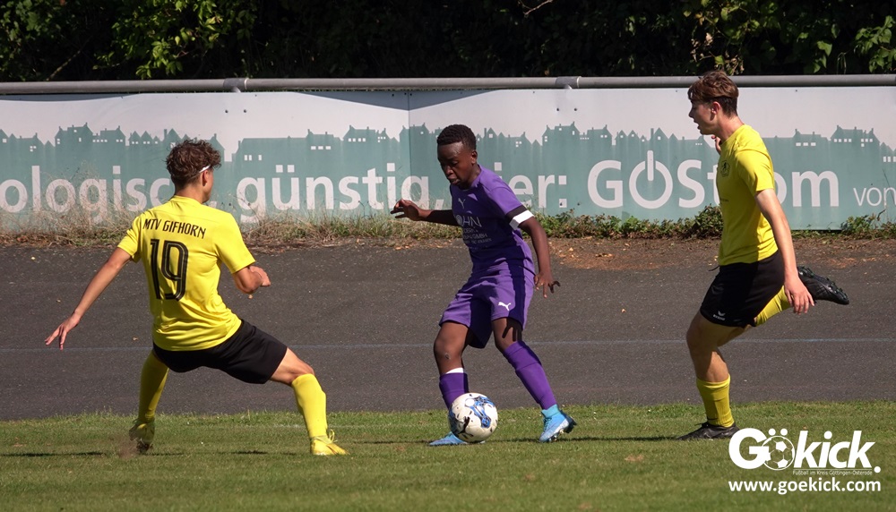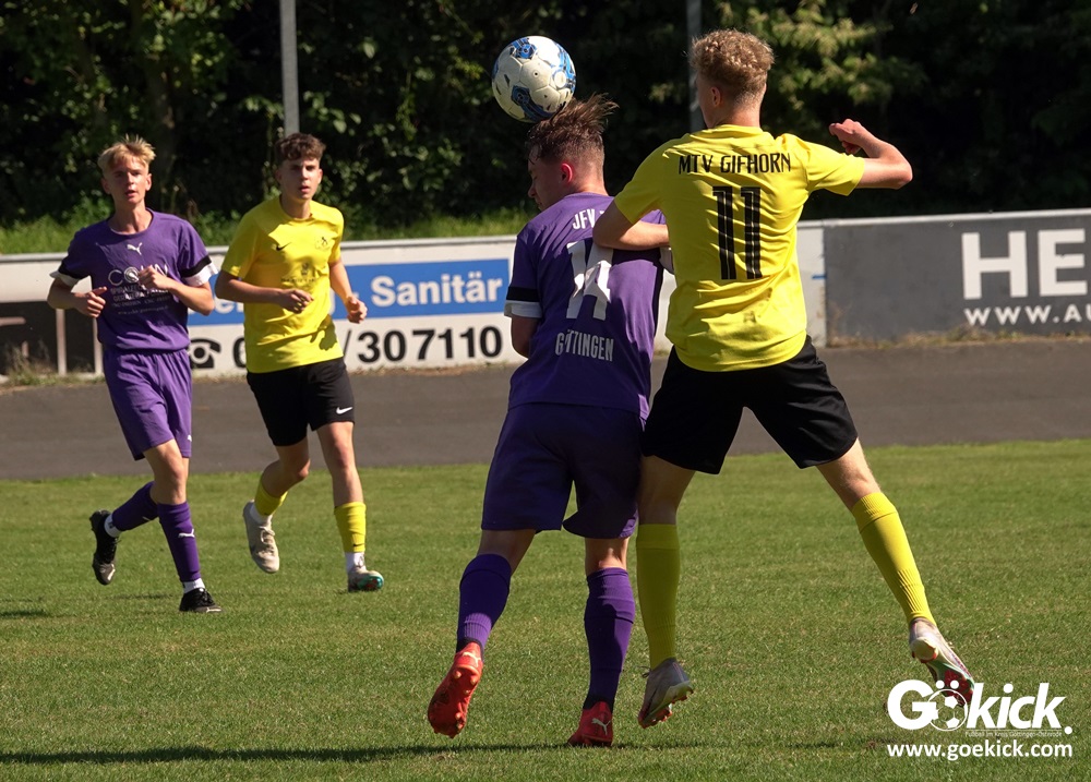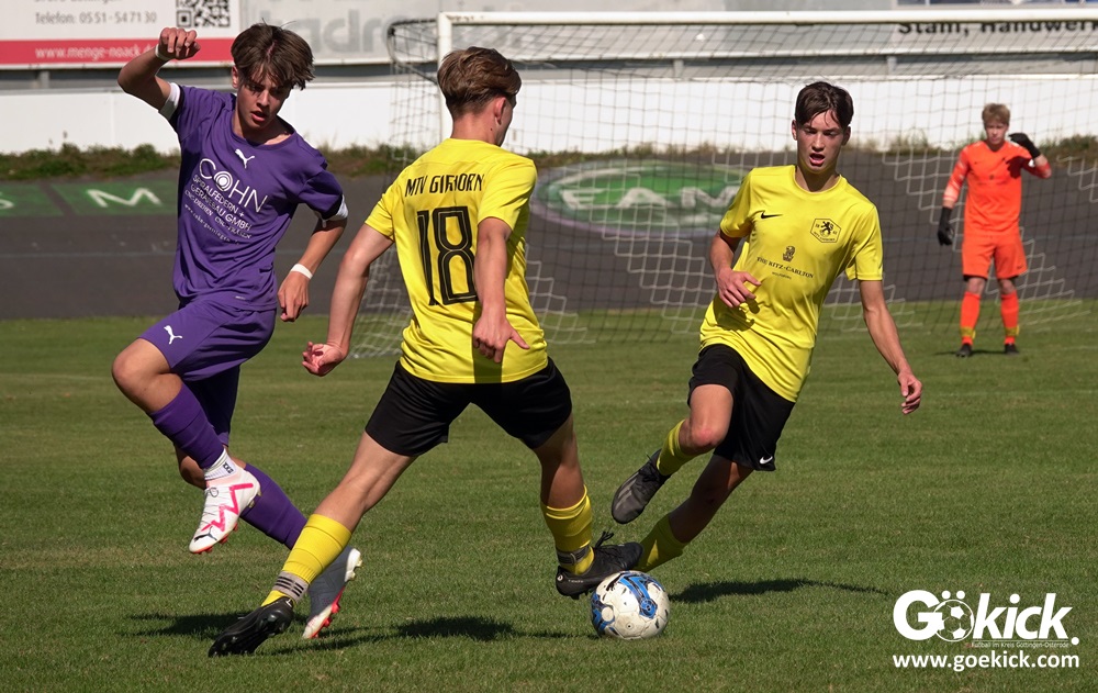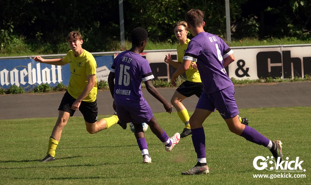Die U17 des JFV 37 Göttingen bleibt in der B-Jugend-Landesliga weiterhin ohne Sieg. Im dritten Punktspiel auf eigenem Platz im KRÜGERPARK am Sandweg unterlag das Team von Trainer Karim Abdoulaye am vergangen Samstag gegen den Vizemeister des Vorjahres, den MTV Gifhorn, mit 2:5 (0:2). Damit rangiert das lila Team aktuell mit einem Zähler auf Abstiegsplatz zehn.