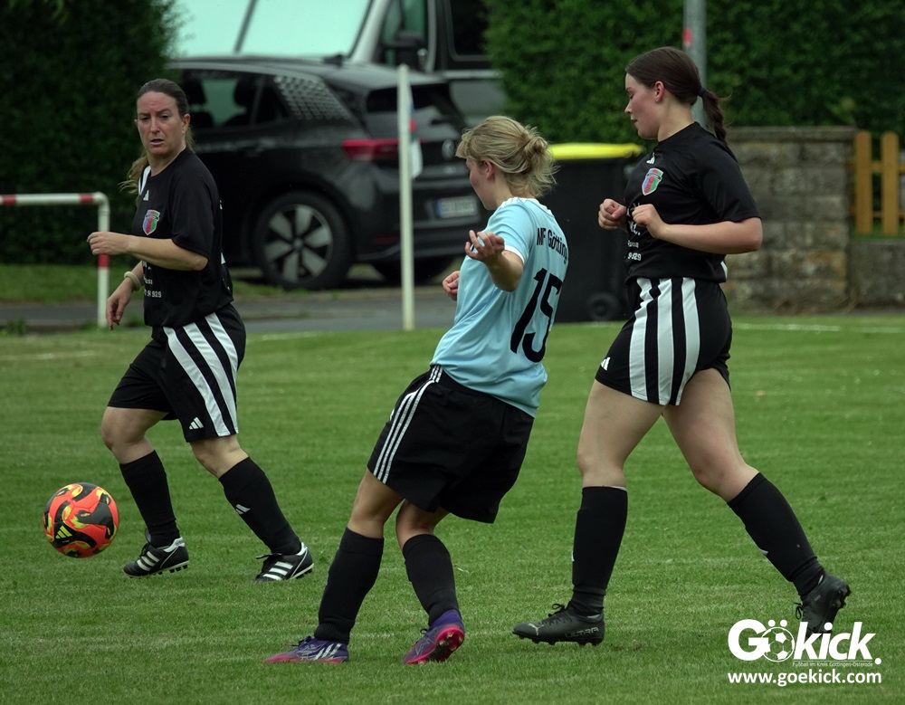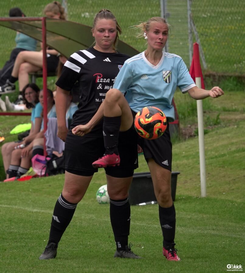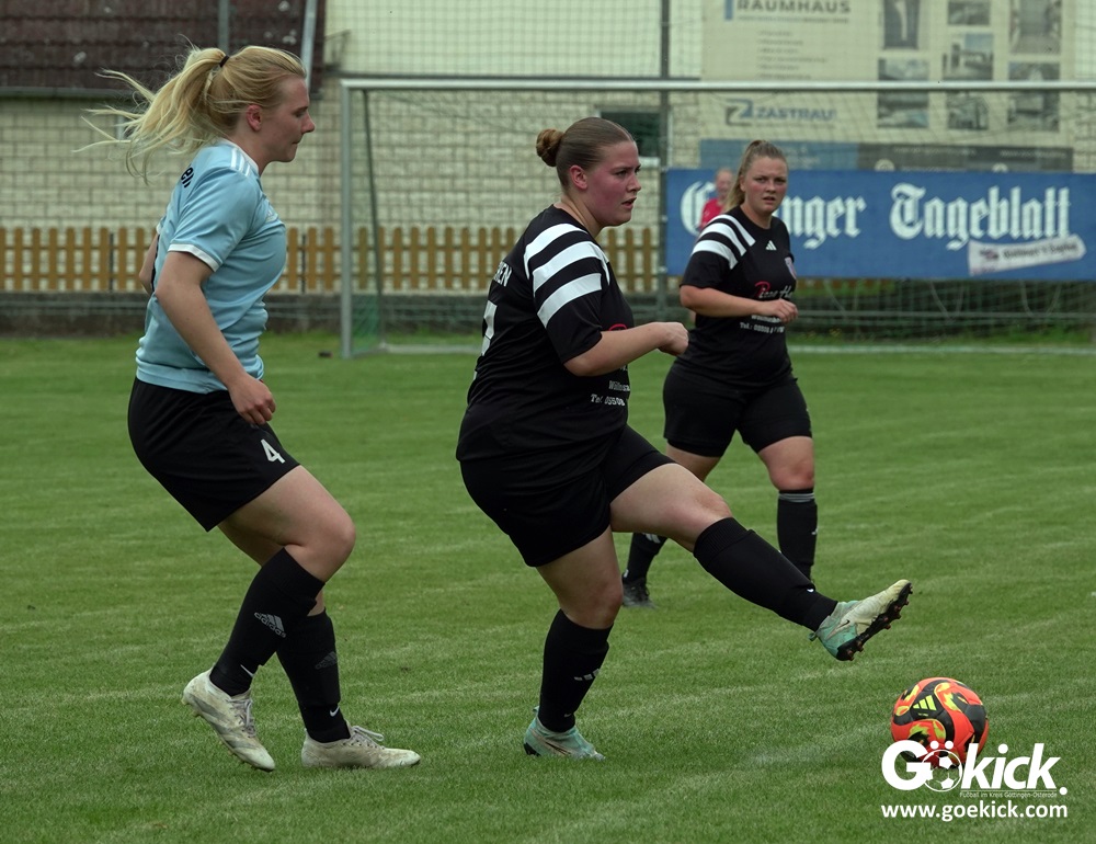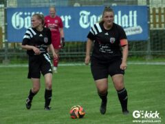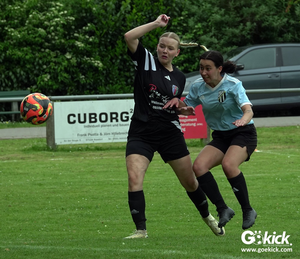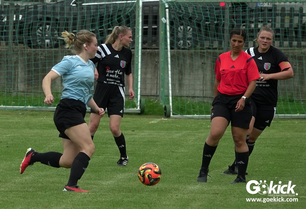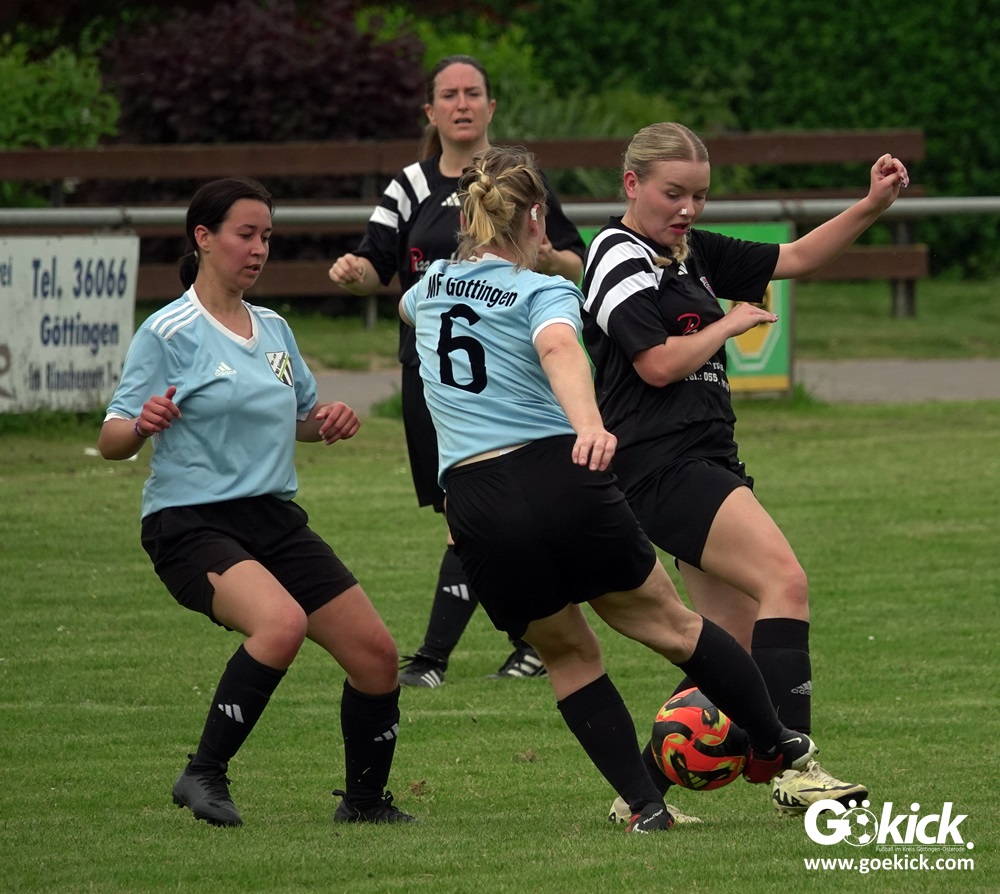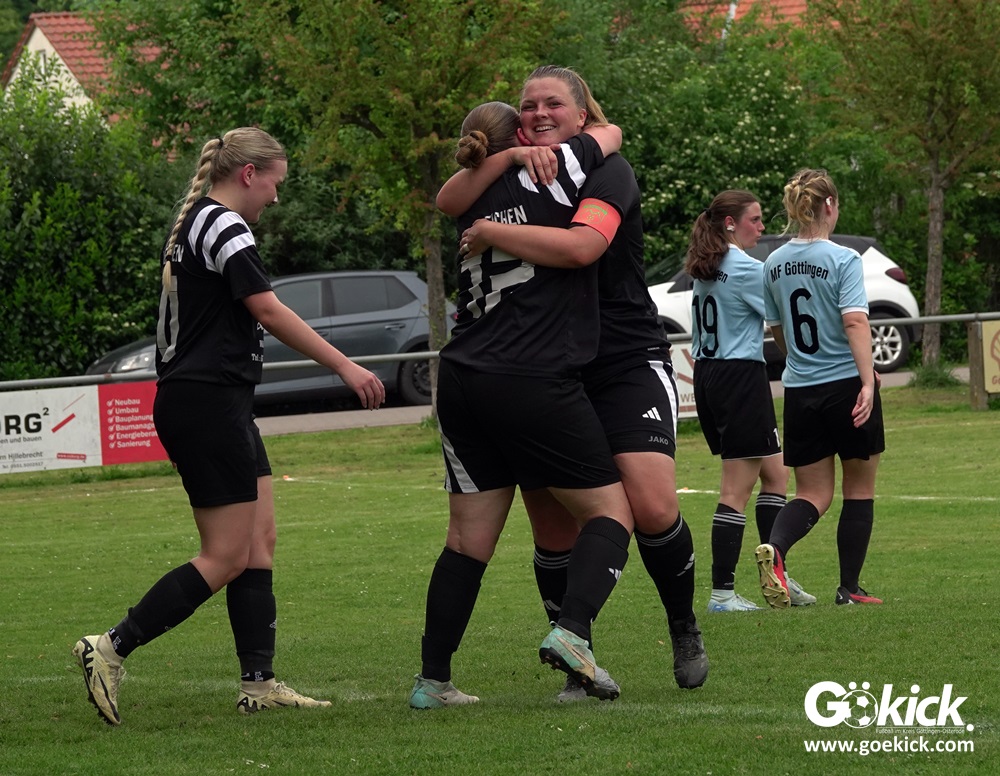 Die Gastgeberinnen waren von Anbeginn das bessere Team. Immer wieder stand Janine Abt im Tor der Gäste im Mittelpunkt. Doch es dauerte immerhin bis zur 20. Spielminute, ehe sich Josephin Oetzel gekonnt in Szene setzte und mit strammen Schuss das 1:0 für die Heimelf erzielte. Zehn Minuten später trat Jule Friedrichs zu einem Freistoß an. Der Ball landete an der Querlatte des Tores, von dort sprang er vor die Füße von Samira Wasmus, die zum 2:0 vollendete. Der Jubel der jungen Frau ließ vermuten, dass ein solches Ereignis für sie Seltenheitswert besitzt – und tatsächlich: es war ihr erster Saisontreffer! Glückwunsch! Bei der Aktion verletzte sich allerdings die MF-Torfrau und musste ausgewechselt werden. Später kam sie aber noch als Spielerin zum Einsatz. Eine Minute vor dem Ende der regulären Spielzeit der überraschende Anschlusstreffer für die Göttinger Gäste. Leandra Emelia Bernsdorff traf in der 44. Spielminute zum 1:2 aus Sicht des MF III. Damit ging es in die Halbzeitpause.