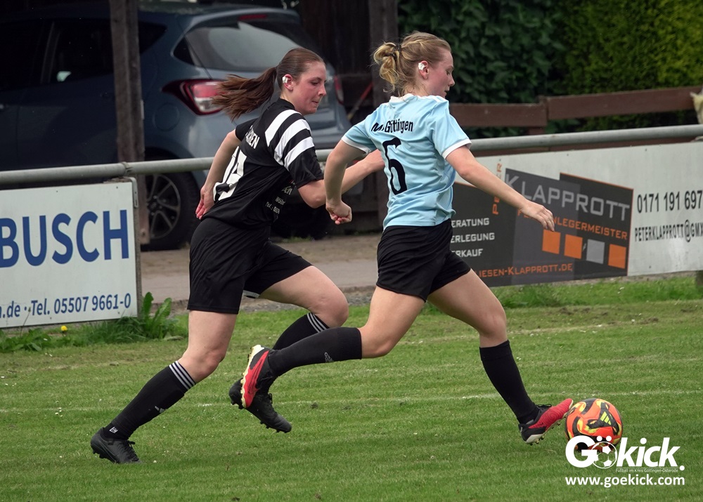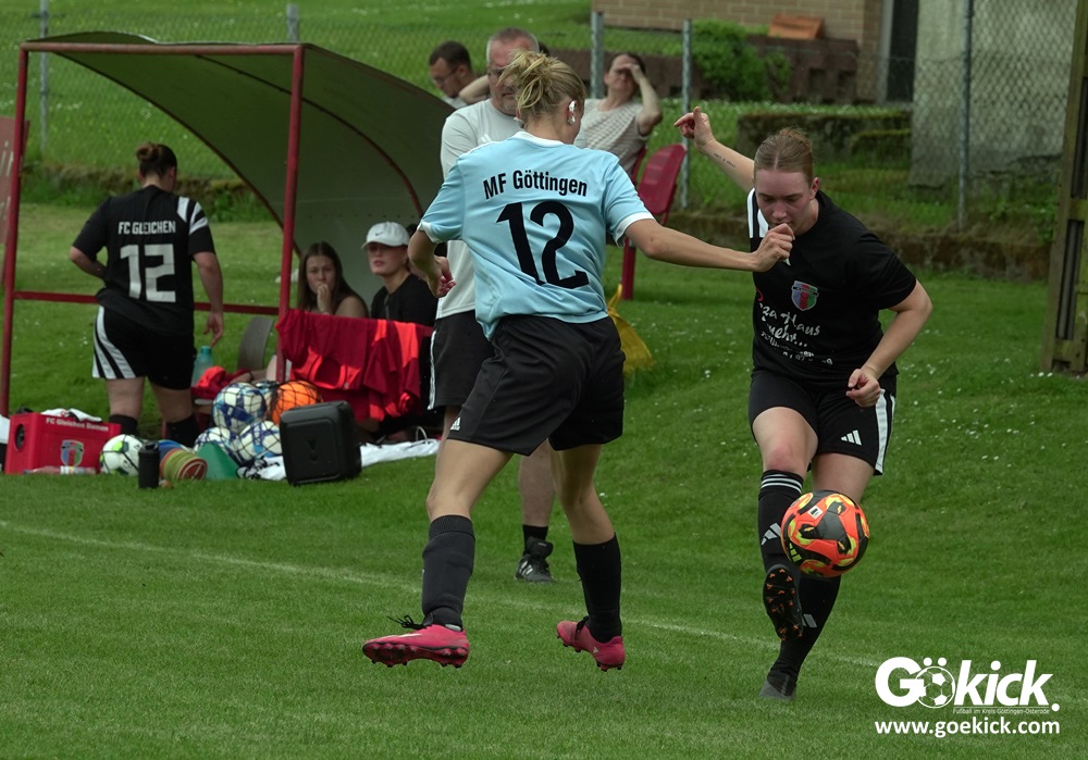 Die Frauen-Mannschaft des FC Gleichen ging am vergangenen Samstag favorisiert in das Punktspiel des 24. Spieltages der Kreisliga auf eigenem Sportplatz in Diemarden gegen die dritte Mannschaft des MF Göttingen. Und lange Zeit sah es so aus, dass das Team von Trainer Marko Weiss dieser Rolle auch gerecht werden würde. Doch nach einer 2:0-Führung musste sich der FC Gleichen am Ende mit dem 2:2-Unentschieden zufrieden geben. Der Gastgeber bleibt mit 33 Punkten Tabellen-Fünfter, dem Gast aus Göttingen reicht der Punkt, in der Tabelle auf Platz neun zu klettern.
