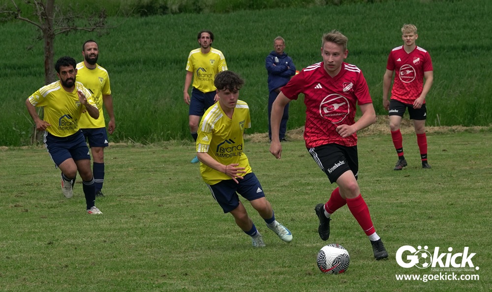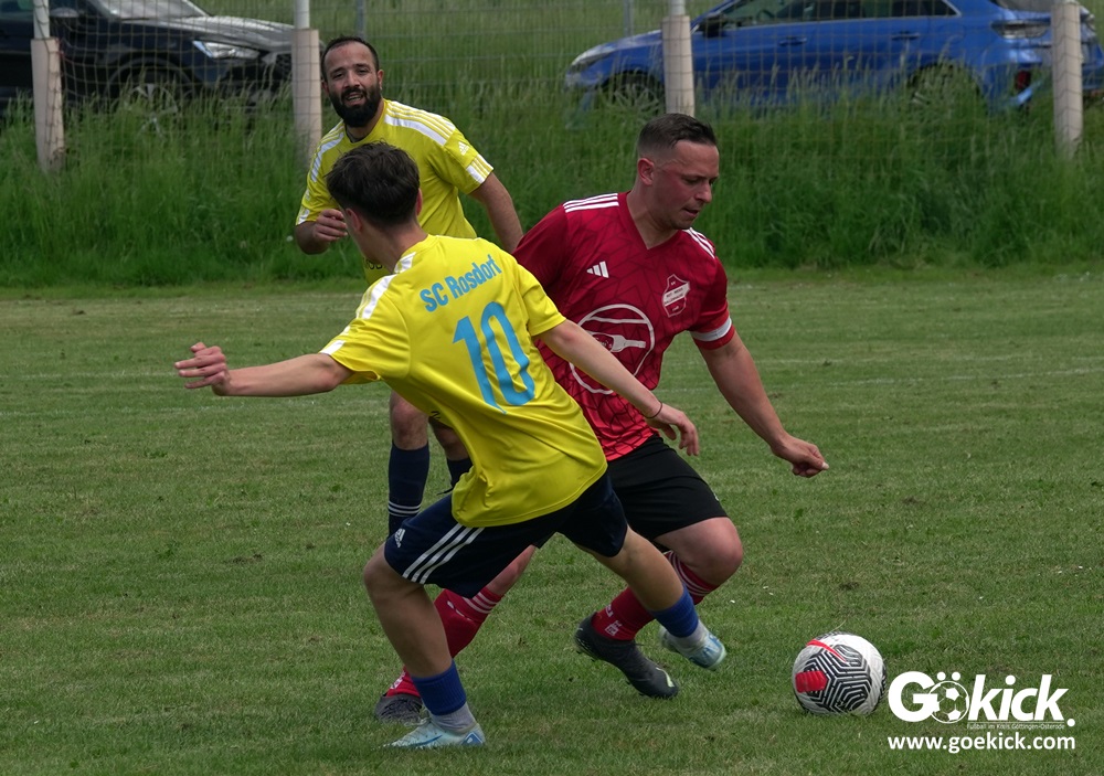 Emilian Pflug brachte den Gastgeber bereits nach vier Minuten in Führung. Doch der Gast von Trainer Andreas Broscheit kam nach 23 Minuten durch einen von Adem Sahin sicher verwandelten Elfmeter zum Ausgleich (Video). Kapitän Jan Denecke brachte die Rosdorfer Reserve nach 33 Minuten sogar in Führung. Und zwei Minuten vor dem Ende der ersten Halbzeit erhöhte Klaus-Dieter Herrmann sogar auf 3:1 für Rosdorf. Mit dem für die Hausherren von Trainerin Mailine Bäte ernüchternden 1:3-Rückstand ging es in die Halbzeitpause.
