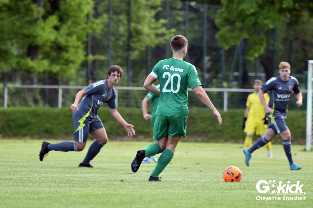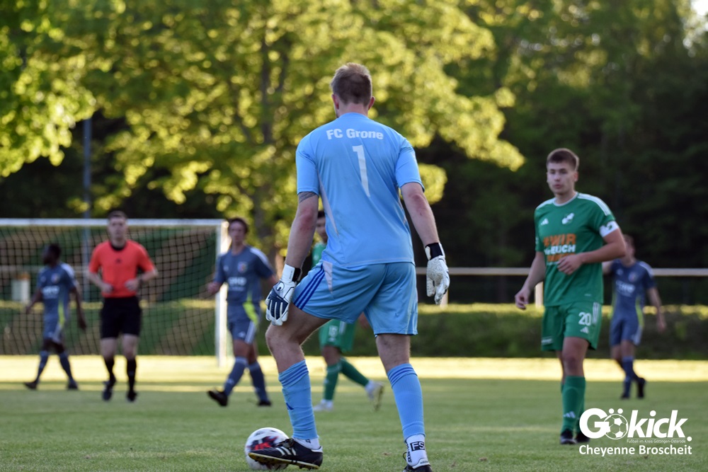 Ist der FC Grone noch zu retten? Nach der Niederlage im Kellerduell mit dem FC Gleichen am Freitag-Abend auf dem eigenen Sportplatz, steigt die Skepsis darüber, dass das Team aus dem Göttinger Westen auch in der nächsten Spielzeit dem überregionalen Fußball angehört. Die Mannschaft von Trainer Jan Ringling unterlag dem ehemaligen Schlusslicht mit 0:1 (0:1). Vor den abschließenden vier Punktspielen beträgt der Rückstand zum Rettenden Ufer inzwischen sieben Punkte – viele Konkurrenten im Abstiegskampf haben zudem noch mehr Spiele auszutragen, also mehr Chancen, Punkte zu erringen. Der Sieger überholt den FC Grone zwar und übergibt die Rote Laterne an den Gastgeber, hat aber selbst auch jetzt noch sechs Punkte Rückstand zum Tabellenplatz, der den Klassenerhalt bedeuten würde.