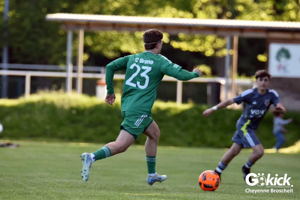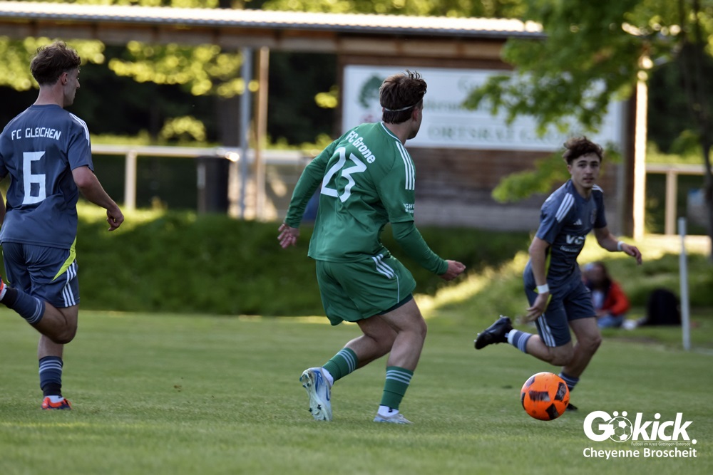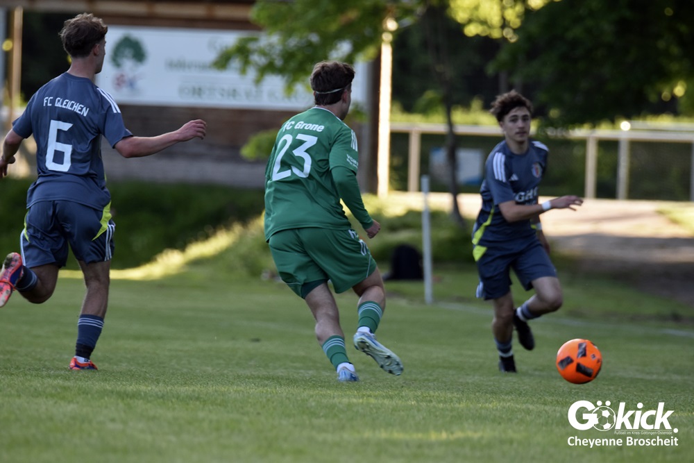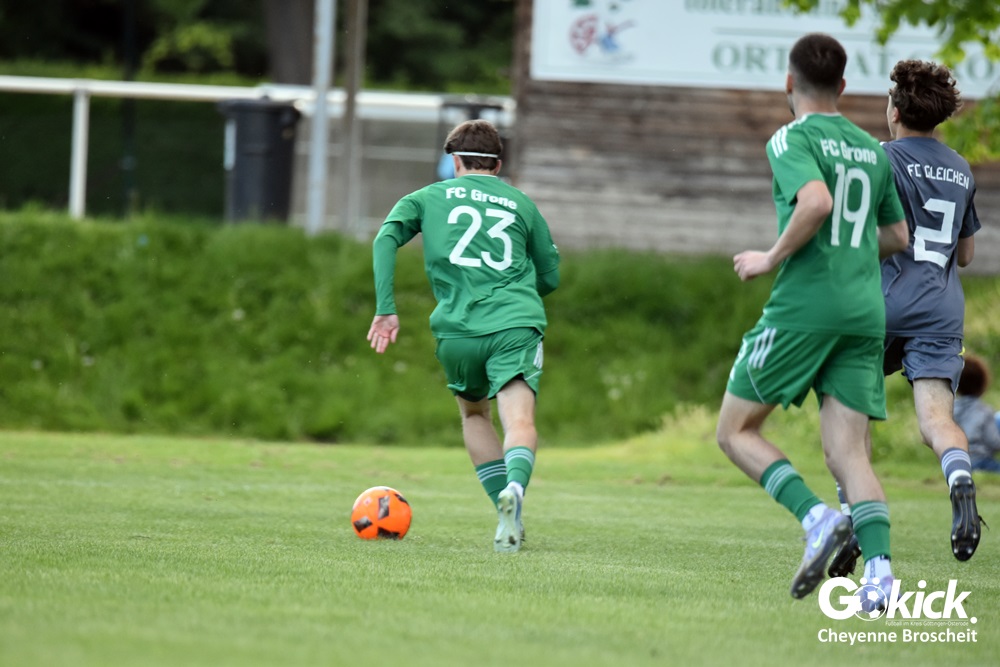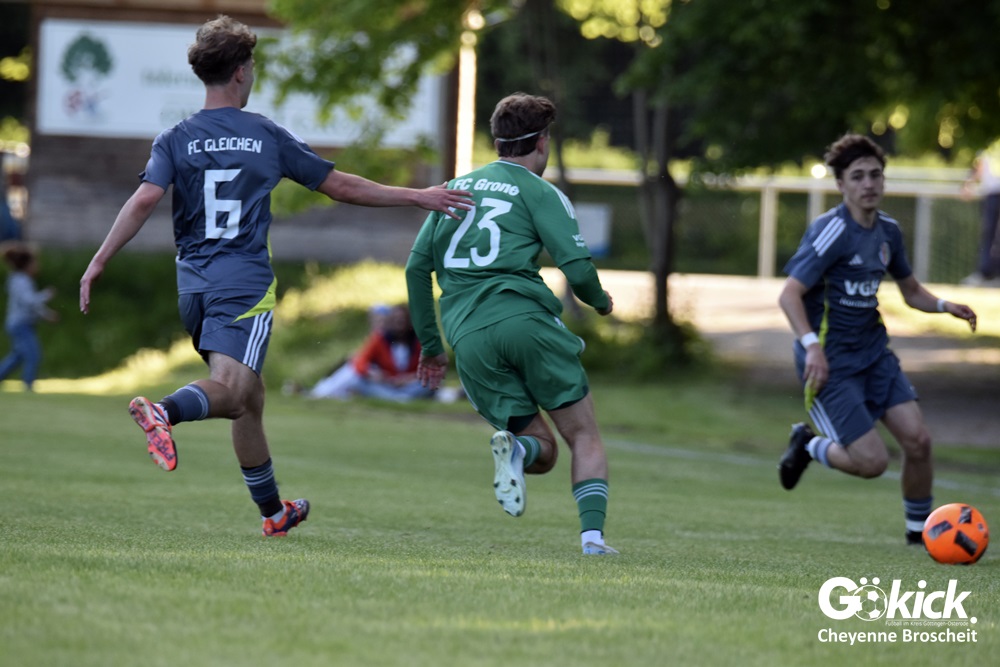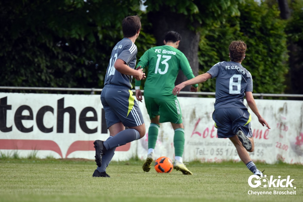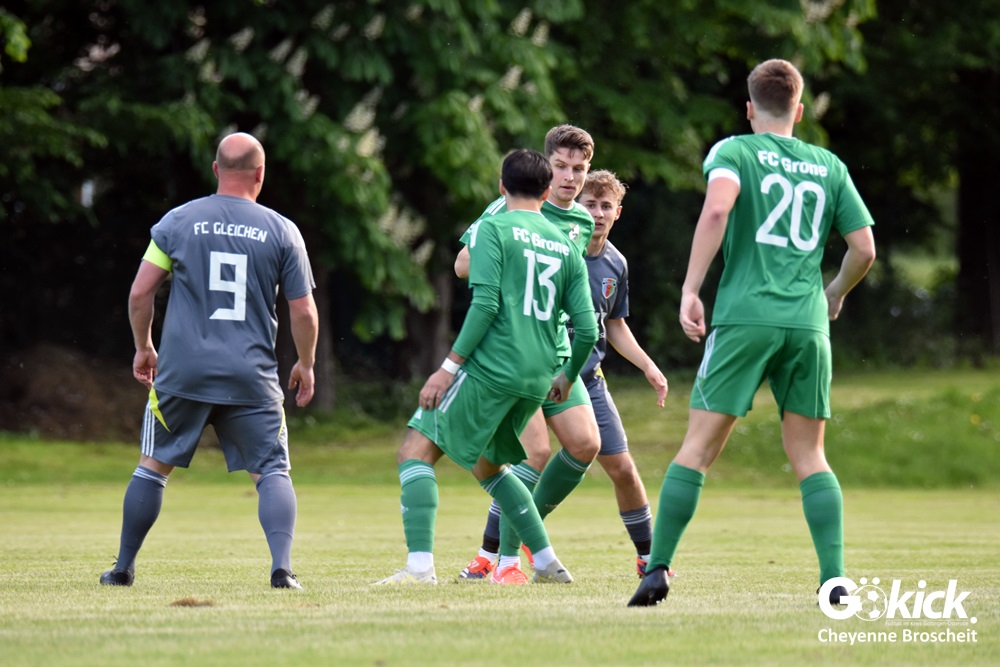 Der Goldene Treffer für den FC Gleichen, der nach dem Rücktritt von Trainer Gregor Czosnyka von Ralf Stieg und Thorsten König gecoacht wird, gelang Anton Saman Schmalenbach in der 31. Spielminute. Dem FC Grone misslang es, gegen den FC Gleichen, der schon 80 Gegentore in 25 Spielen geschluckt hatte, einen Treffer zu erzielen. Am Ende unterlag das grün-weiße Team mit 0:1 und muss sich spätestens jetzt mit der Planung für die Kreisliga beschäftigen. Das neue Trainerduo des FC Gleichen feierte im ersten Spiel gleich den ersten Sieg und könnte womöglich neue Kräfte im Team wecken. Die beiden Spiele gegen den Aufsteiger FC Hettensen/Ellierode könnten vielleicht entscheidend sein!