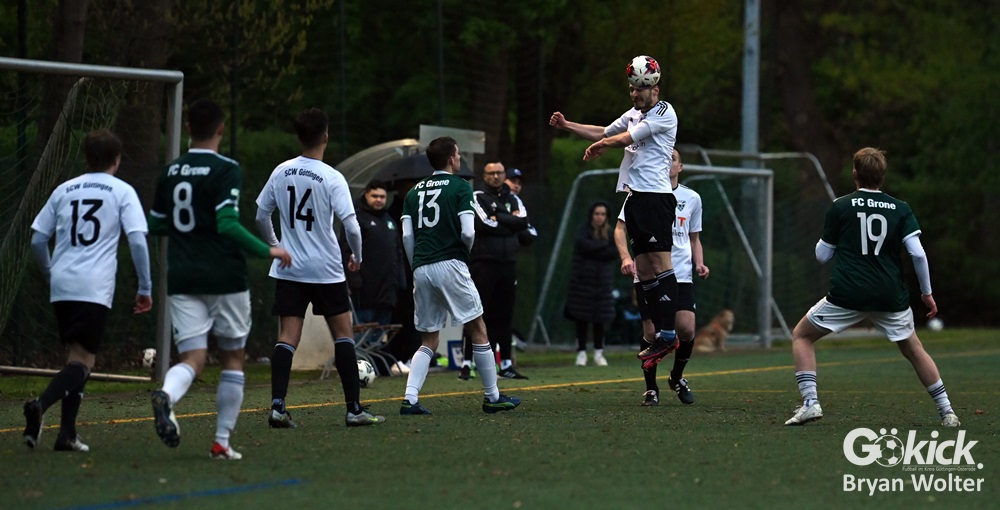 Die Führung für den FC Grone von Trainer Jan Ringling besorgte Ron-Luca Friedrich bereits nach fünf Minuten. Die Führung sollte der Gastgeber jedoch nicht mit in die Pause nehmen – Marius Placzek gelang in der 42. Spielminute der Ausgleich für die Nord-Göttinger. Damit ging es auch zum Seitenwechsel.