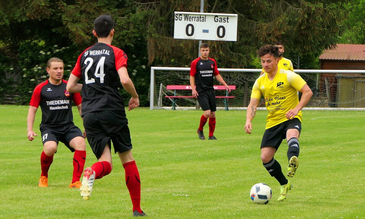 Zur Geschichte dieser Partie gehören zweifelsohne die vier Tore des Mark Glatter, die er hintereinander erzielte. Nach der Führung durch Leon Fromm (8.), gelang Mark Glatter in den Minuten 16, 40 und 44 ein lupenreiner Hattrick. Das 5:0 folgte zu Beginn der zweiten Halbzeit (49.) Dann durfte Leon Fromm zweimal ran (51. und 75.), ehe der durch sich selbst eingewechselte Spielertrainer Kai Armbrust vier Minuten nachdem er auf den Platz lief, das abschließende 8:0 erzielte (85.). Somit kann die SG Werratal schon einmal den Sekt für die Klassenerhaltsparty kalt stellen. Gefreut dürfte sich auch Matthias Weise, der die SG Werratal aller Voraussicht nach in der Bezirksliga betreuen wird.