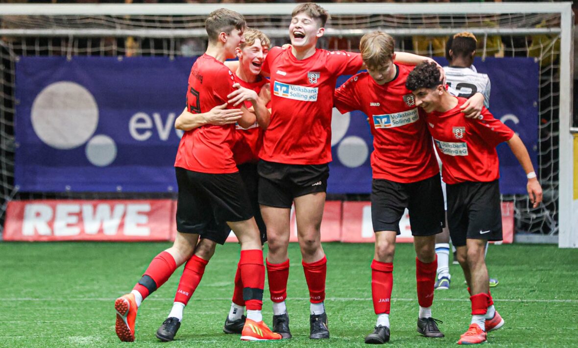 Der heutige Turniertag hatte gleich mehrere Überraschungen zu bieten, zum Einen konnte die ansonsten punktlose JSG Weser/Solling ausgerechnet gegen das Profiteam vom FC Brügge überzeugen und kam nach 0:2 Rückstand noch zu einem 2:2 Remis und zum Anderen kam der 1. SC Göttingen 05 gegen AZ Alkmar beim 2:2 ebenso zu einem Unentschieden. Noch erfolgreicher war das Team vom JFV 37 Göttingen, das gegen Eintracht Braunschweig sogar einen 4:3 Sieg einfahren konnte. Damit aber auch gleichzeitig das Hammerlos erwischte und in der morgigen Zwischenrunde gegen die Profis von Eintracht Frankfurt und Mainz 05 ran muss. In der Gruppe E, in der normal die besten Regios untereinander den Viertelfinalteilnehmer ausmachen, treffen die JSG Eintracht HöhBernSee, FC Eintracht Northeim und 1. SC Göttingen 05 auf das Profi Team von Eintracht Braunschweig. Die Gruppenaufteilung und Spielpläne findet ihr weiter unten.