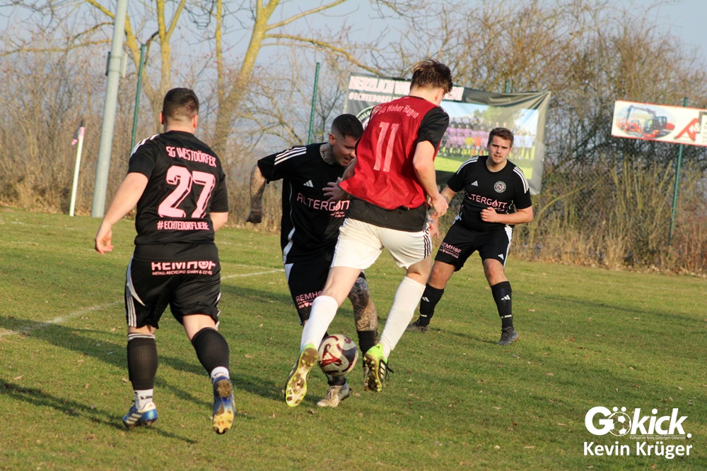 Zum ersten Pflichtspiel nach der Winterpause empfing die SG Westdörfer die zweite Mannschaft der SG Hoher Hagen. Nach der langen Pause war beiden Teams anzumerken, dass der Spielrhythmus noch nicht vollständig zurück ist. Trotzdem entwickelte sich von Beginn an eine intensive Partie mit vielen Zweikämpfen.