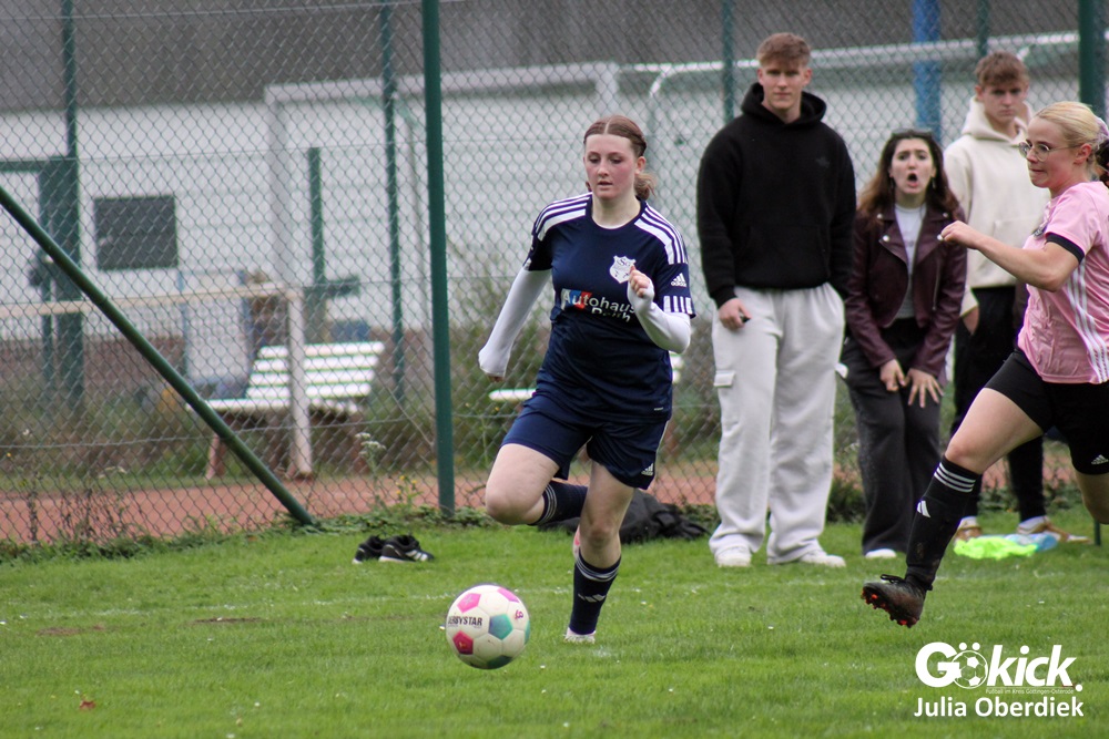 Die Gäste von Trainer Jan-Alexander Nolte zeigten von Beginn an, dass sie an diesem Tag nichts anbrennen lassen wollten. Bereits in der 2. Minute traf Melissa Hille zur frühen Führung. Danach rollte Angriff auf Angriff auf das Tor der SG, die sich mit großem Einsatz und viel Laufarbeit gegen den Druck stemmte. Franziska Lüken (11.) und Ida Darlene Svensson (17.) erhöhten auf 0:3, ehe Emili Sophi Savosin (31.) und erneut Melissa Hille (34.) den 0:5-Pausenstand herstellten.