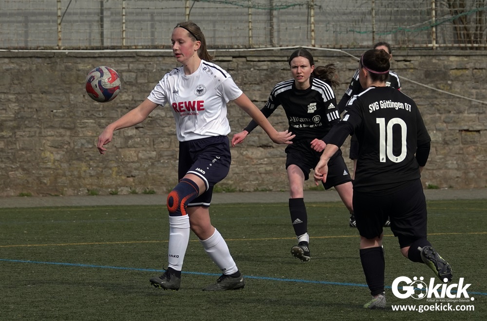 Die Führung für den Bezirksliga-Sechsten SVG Göttingen II erzielte Luise Haagen in der 42. Spielminute. Beim Spielstand von 1:0 wurden die Seiten gewechselt.